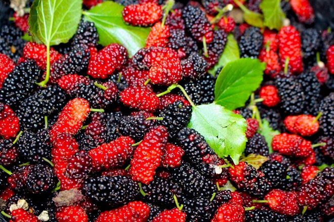 Khoảng giữa tháng 3, những quả dâu tằm chuyển từ màu xanh non sang màu đỏ mọng rồi dần sang màu chín tím hơi đen. Lúc này cũng là thời gian người dân bắt đầu vào vụ thu hoạch.