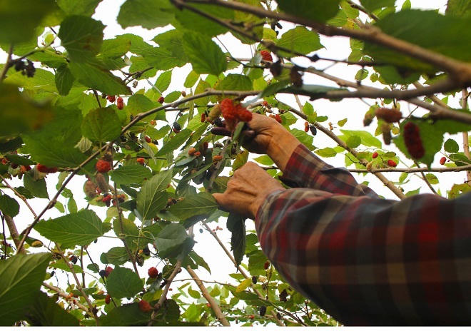 Dâu tằm được giá, người dân phấn khởi thu hoạch