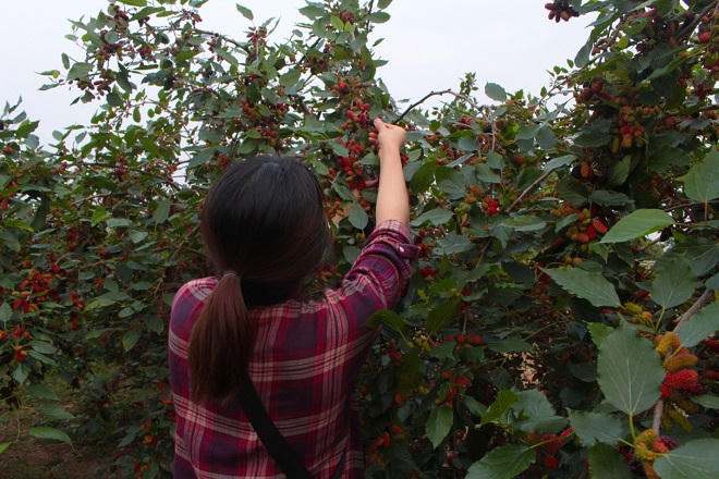 Đối với những cây dâu tằm khoảng từ 2 năm trở lên sẽ phải dùng ghế để hái.