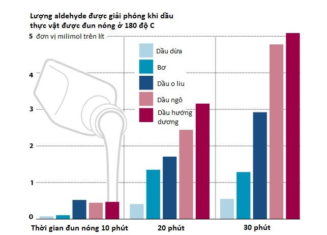 Nấu ăn bằng dầu thực vật có thể đe dọa sức khỏe con người vì giải phóng chất hóa học có tên aldehyde, vốn được cho là có liên quan đến ung thư, bệnh tim mạch và mất trí.