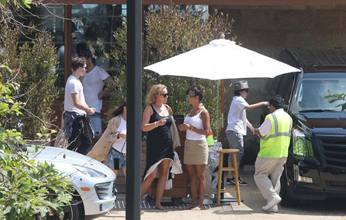 Gia đình Vic - Becks đang ở Mỹ trong dịp các con họ nghỉ hè. Cuối tuần qua, ngôi sao 42 tuổi mặc thoải mái, đưa các con đi ăn trưa ở Hollywood.