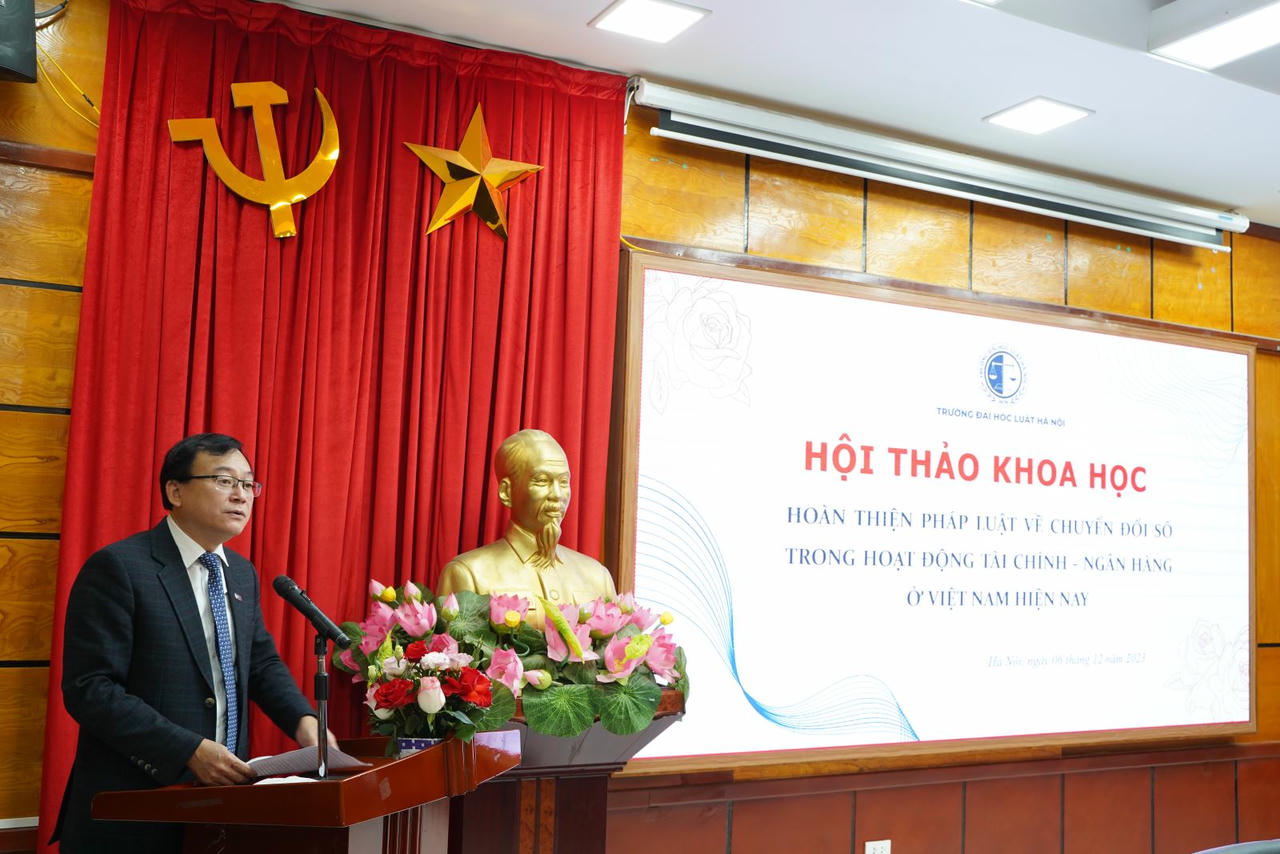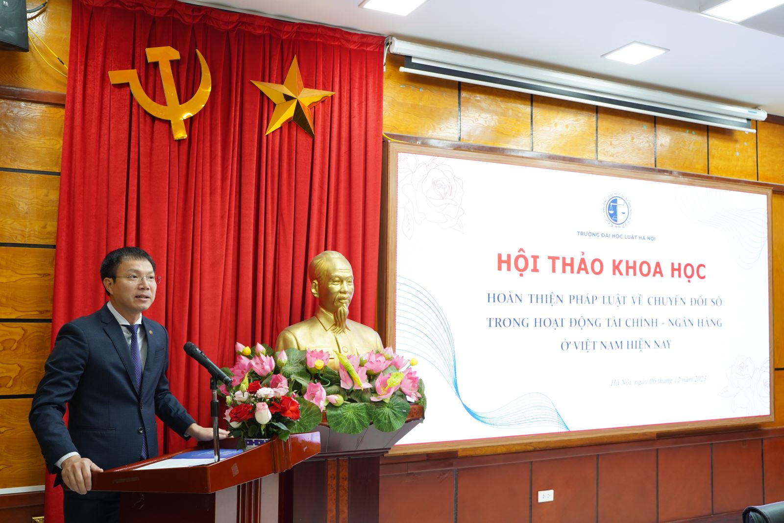 Phát biểu khai mạc, TS. Đoàn Trung Kiên nhấn mạnh Đảng và Nhà nước ta rất quan tâm đến hoạt động chuyển đổi số và kinh tế số, trong đó chuyển đổi số trong hoạt động tài chính – ngân hàng là một trong 08 lĩnh vực cần ưu tiên chuyển đổi số trong Chương trình chuyển đổi số quốc gia đến năm 2025, định hướng đến năm 2030. Bên cạch những tác động tích cực, chuyển đổi số trong lĩnh vực tài chính – ngân hàng cũng đối mặt với rất nhiều thách thức phát sinh từ những vấn đề mới chưa được điều chỉnh bởi pháp luật như: tổ chức và hoạt động của các công ty công nghệ tài chính Fintech; mô hình ngân hàng số hay trách nhiệm bảo vệ thông tin khách hàng; phòng, chống rửa tiền và xử lý đối với sự gia tăng của những tội phạm công nghệ cao...