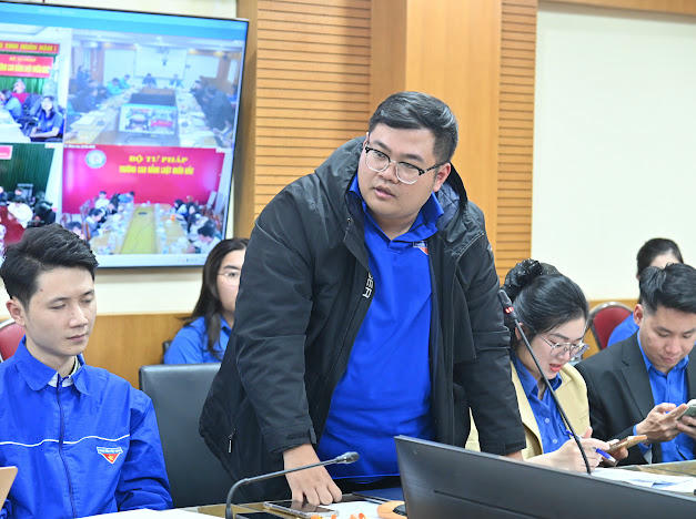 Các đồng chí Bí thư, Phó Bí thư các Đoàn cơ sở trực thuộc Đoàn thanh niên Bộ Tư pháp phát biểu tại Hội nghị. |
