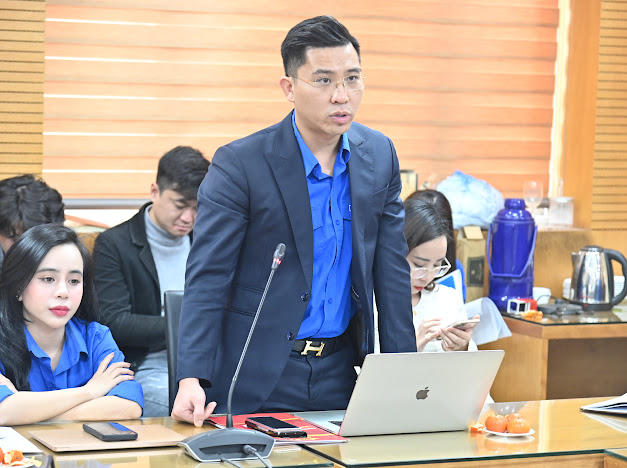 Đồng chí Nguyễn Ngọc Điệp - Phó Bí thư Đoàn khối, Chủ nhiệm Uỷ ban kiểm tra Đoàn khối phát biểu tại Hội nghị. |
