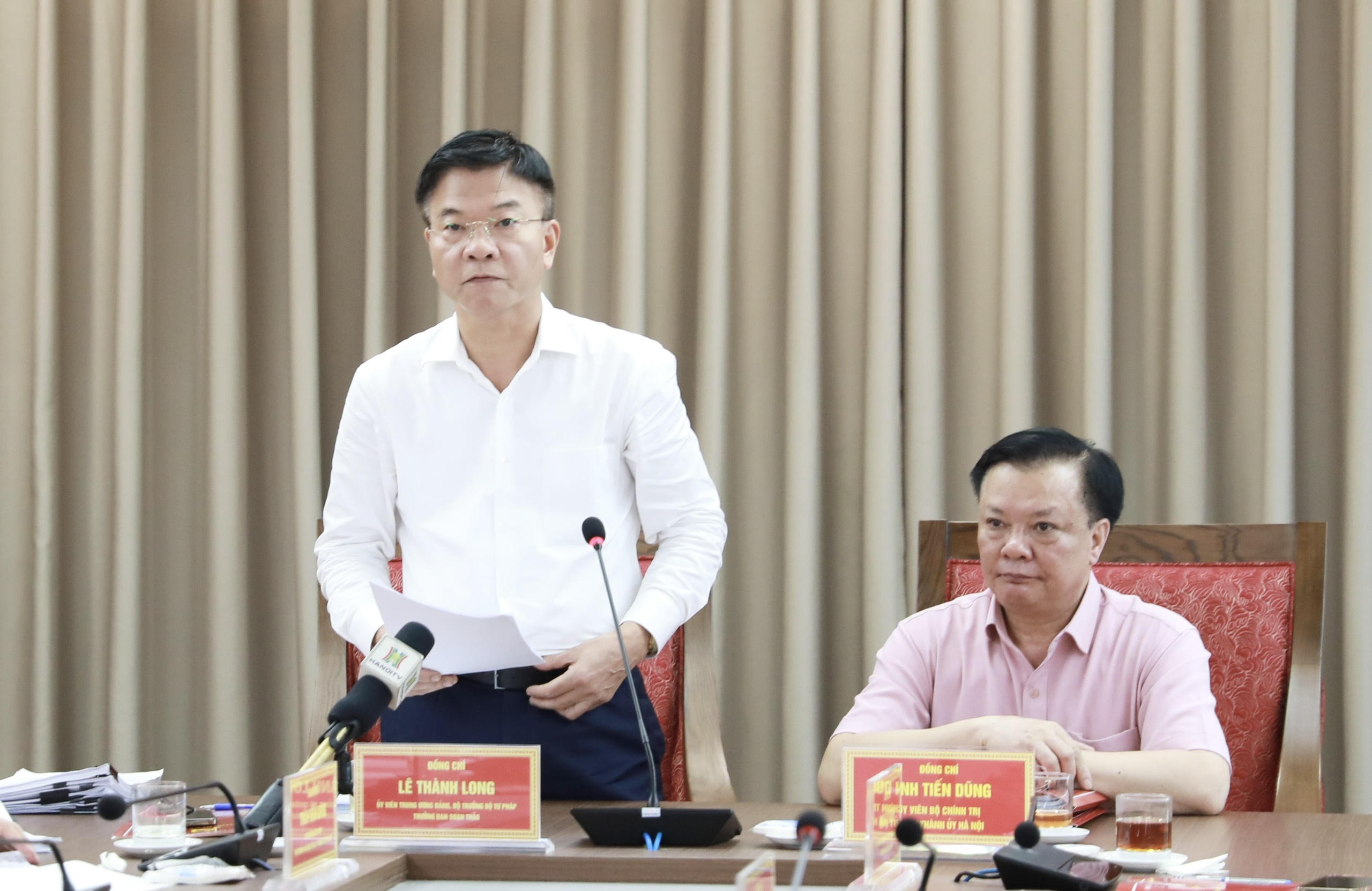 Nhấn mạnh một số điểm mới trong ý kiến chỉ đạo cũng như ý kiến của các đại biểu và chuyên gia, Bộ trưởng Bộ Tư pháp Lê Thành Long khẳng định sẽ tiếp thu và nghiên cứu; đồng thời tiếp tục phối hợp chặt chẽ với thành phố Hà Nội nhằm hoàn chỉnh các bước theo quy định trước khi làm việc với Đảng đoàn Quốc hội trong thời gian tới.