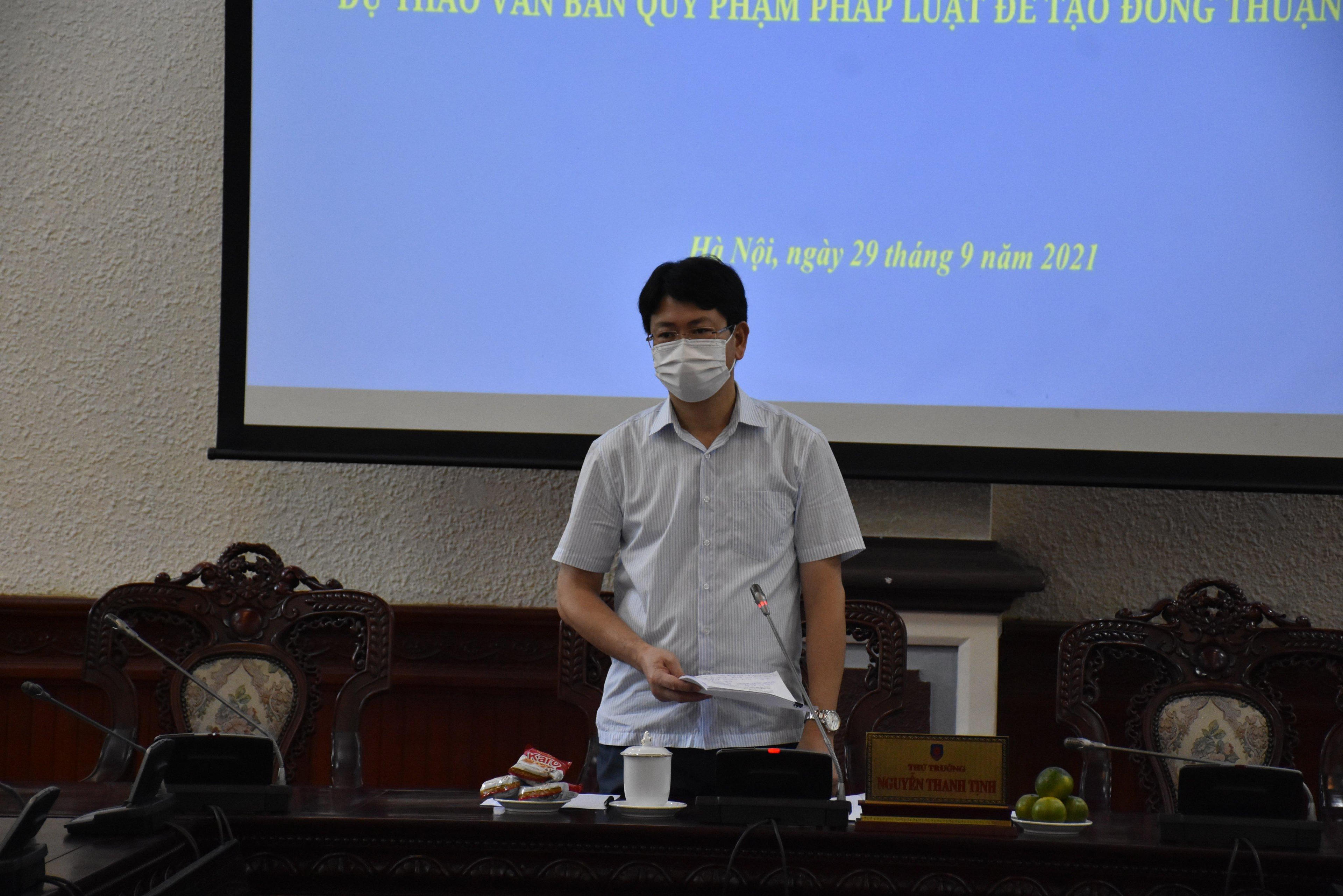 Nhấn mạnh công tác xây dựng thể chế là một trong 3 trụ cột của Văn kiện Đại hội Đảng XIII, Thứ trưởng Nguyễn Thanh Tịnh đề nghị Ban Soạn thảo và Tổ Biên tập thống nhất lại tên gọi Đề án; chú trọng vào các giải pháp hiệu quả để tạo được sự đồng thuận của người dân, phải có kế hoạch truyền thông ngay từ khi các dự án Luật được đưa vào xây dựng chương trình luật, pháp lệnh.