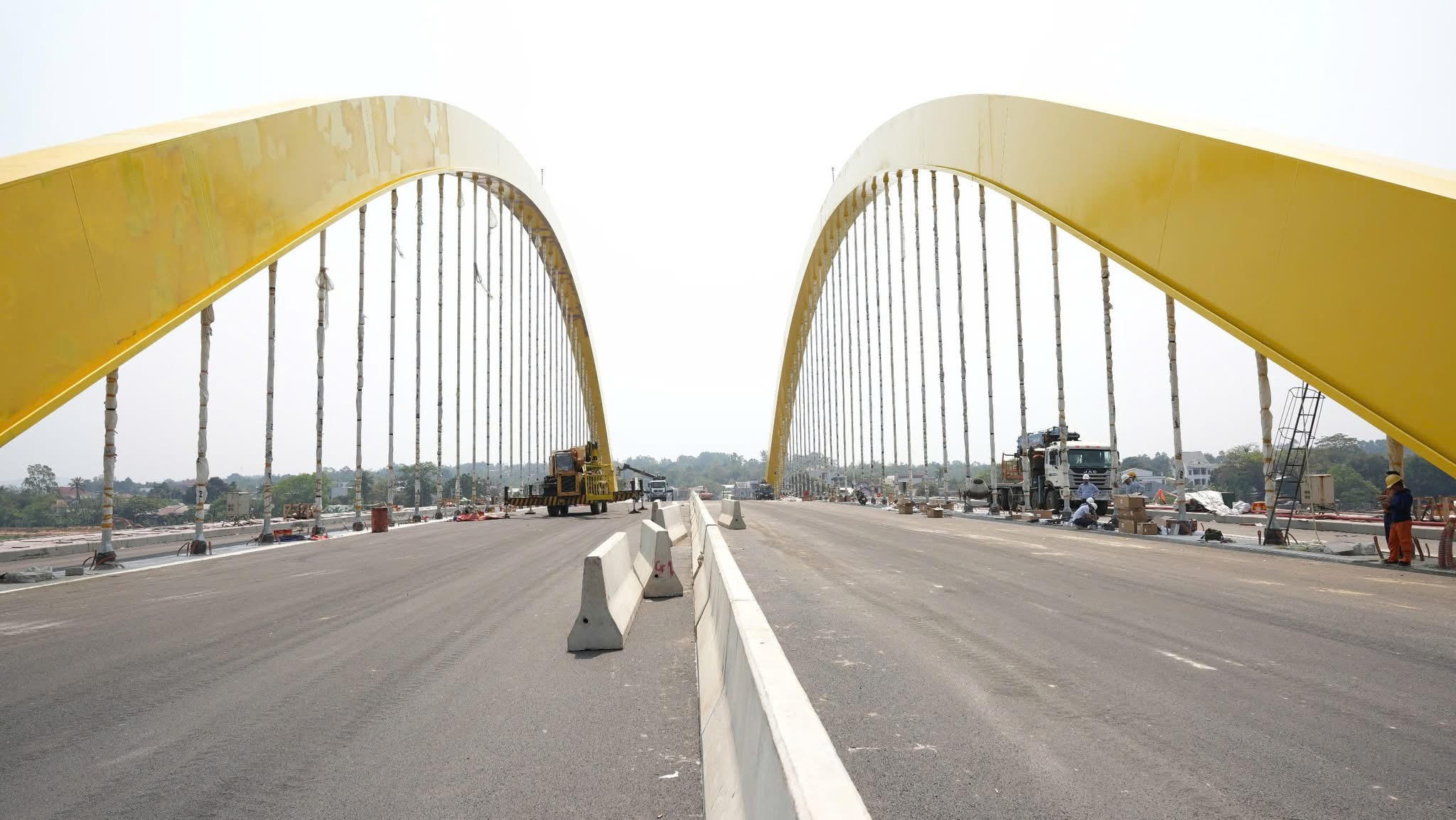Thông tin về dự án, Giám đốc Ban QLDA đầu tư xây dựng công trình giao thông Nguyễn Đăng Trường cho biết, đến nay, tiến độ thi công xây lắp các hạng mục chính thực hiện đạt khoảng 95%. Đang thi công hạng mục lan can, lề đi bộ trên cầu; lắp đặt đường dây điện hệ thống đèn chiếu sáng giao thông, hệ thống đèn mỹ thuật.