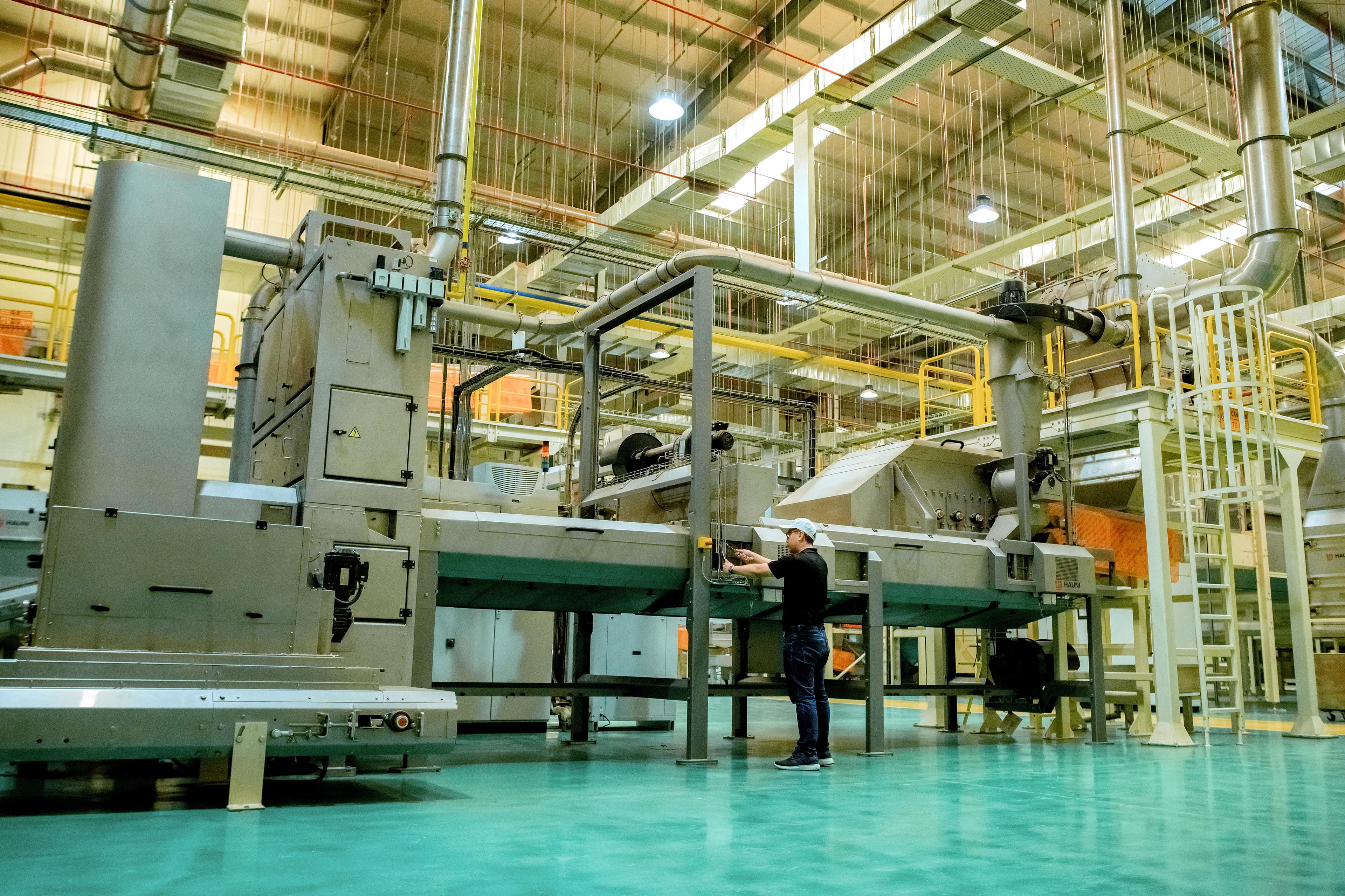 Dây chuyền sản xuất sợi thuốc lá mới được đầu tư tại Nhà máy mới ở Trảng É. |