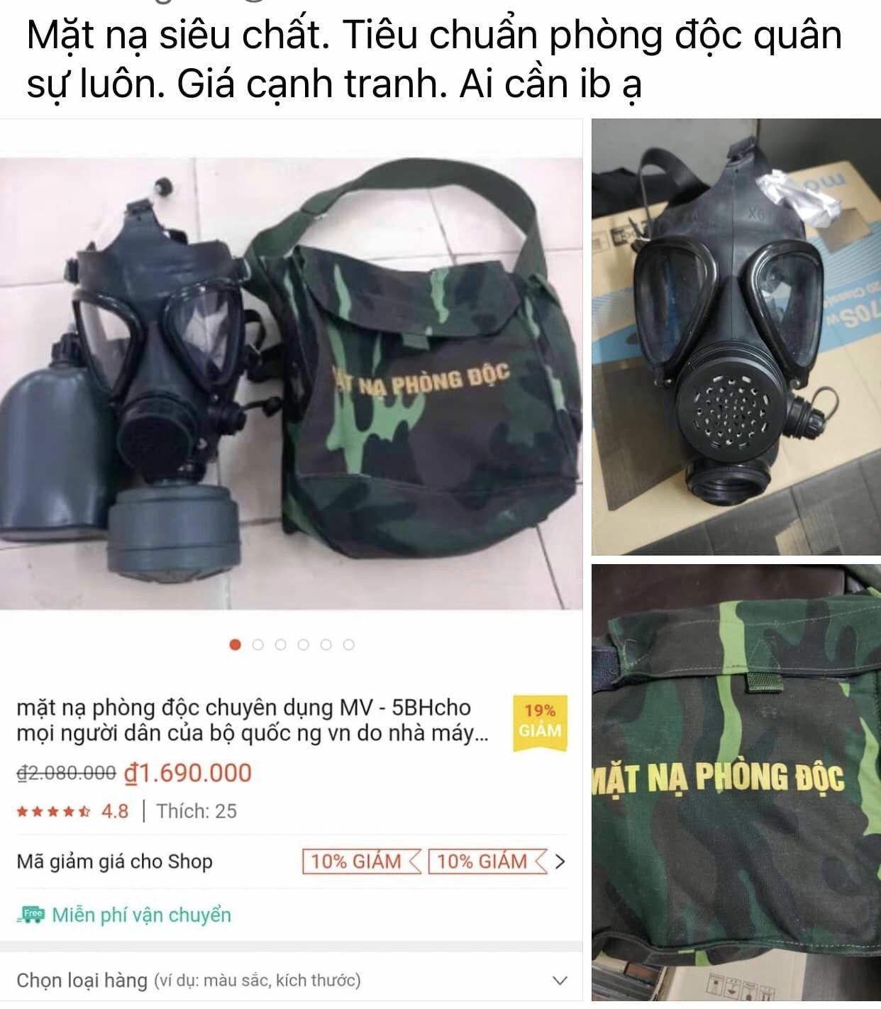 Loại mặt nạ phòng chống độc có giá hơn 1,6 triệu đồng trên sàn thương mại điện tử Shoppe. |