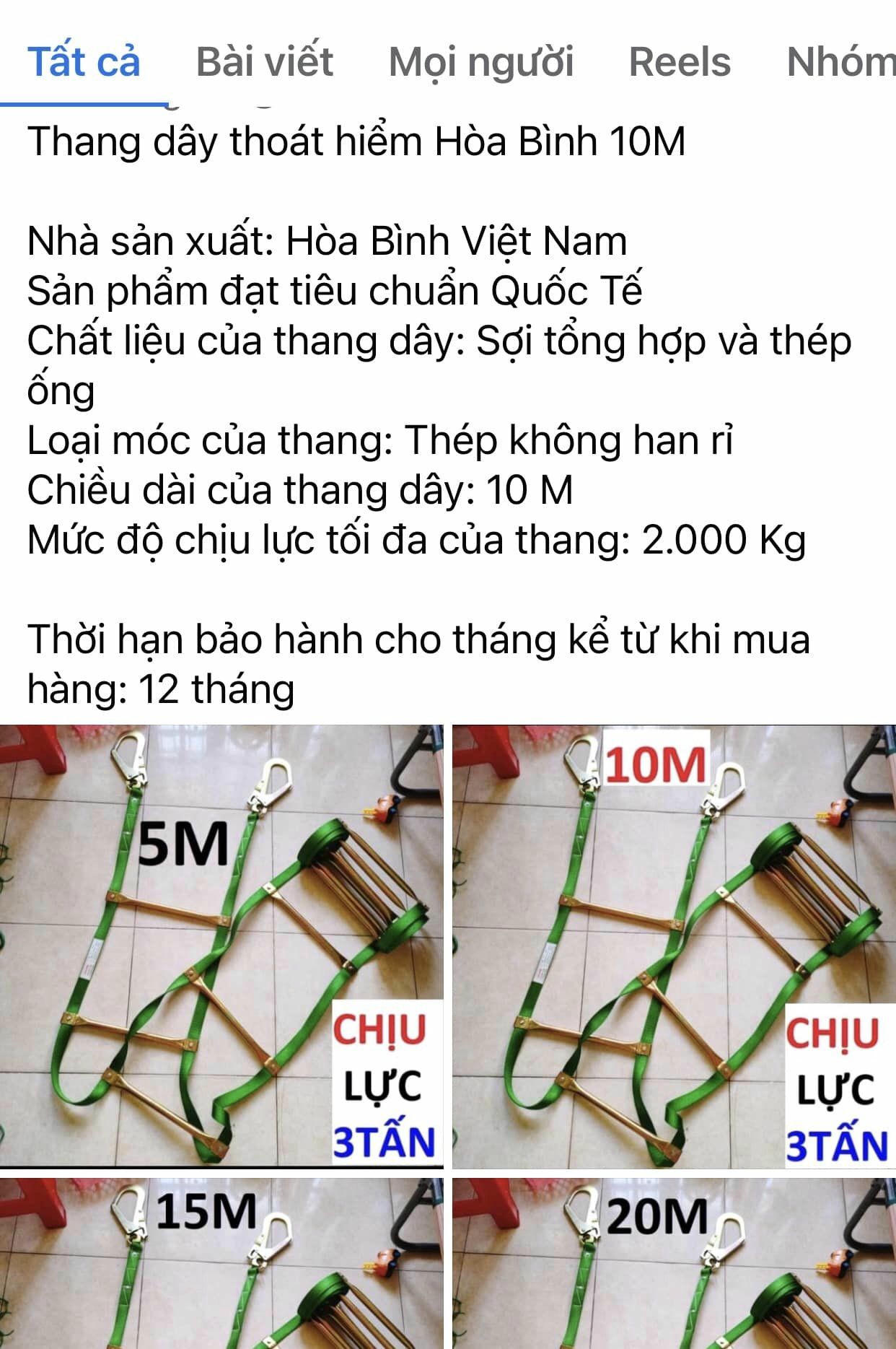 Trong khi đó, có người rao bán dây thang dây xanh theo mét từ 5m - 35m với giá 110.000 đồng/mét; dây trượt thoát hiểm có giá 1,5-3,5 triệu đồng/dây thang, tùy vào độ dài của dây.