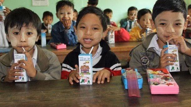 Hình ảnh học sinh tại Myanmar uống sữa trong trường học (nguồn: internet)