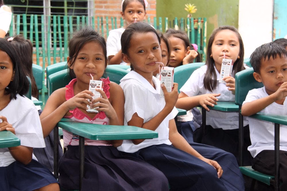 Hình ảnh học sinh tại Philippines uống sữa trong trường học (nguồn: internet)