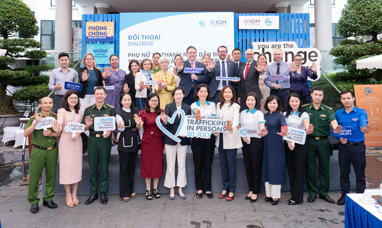 Ngày 2/8/2024 vừa qua, trong khuôn khổ chuỗi hoạt động hưởng ứng Ngày toàn dân phòng, chống mua bán người của Việt Nam, diễn ra từ ngày 1/7 đến ngày 30/9/2024, lần đầu tiên cuộc đối thoại giữa thanh niên và lãnh đạo về chủ đề phòng, chống mua bán người đã được Trung ương Hội Liên hiệp Phụ nữ Việt Nam và IOM trong khuôn khổ hợp tác với Chính phủ Vương quốc Anh tổ chức. Hơn 200 sinh viên từ các trường đại học và cao đẳng tại Hà Nội và những gương mặt trẻ tài năng từ cuộc thi sáng kiến truyền thông của thanh niên thúc đẩy di cư an toàn và phòng, chống mua bán người đã cùng tham gia đối thoại và cùng trao đổi với lãnh đạo từ các cơ quan Chính phủ, tổ chức quốc tế và doanh nghiệp nhằm kêu gọi phối hợp hành động toàn diện để trao quyền cho thanh, thiếu niên đóng góp vào công cuộc phòng, chống mua bán người.