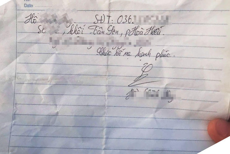 (PLVN) -Người đi đường phát hiện 1 bức thư ngắn ghi lại số điện thoại, địa chỉ cùng với lời nhắn “chúc bố mẹ hạnh phúc” trên cầu sông Hiếu nên trình báo với cơ quan chức năng.