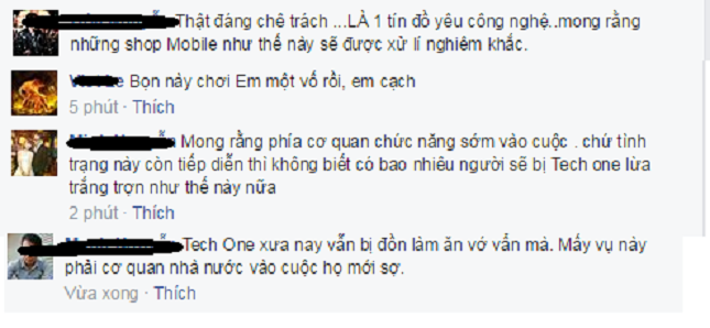 Bạn đọc Mạnh N ở địa chỉ mail: ninhvuanh@gmail.com cho biết: “Tech One xưa nay vẫn bị đồn làm ăn "vớ vẩn" mà. Mấy vụ này phải cơ quan chức năng quản lý của nhà nước vào cuộc họ mới nhận trách nhiệm...”