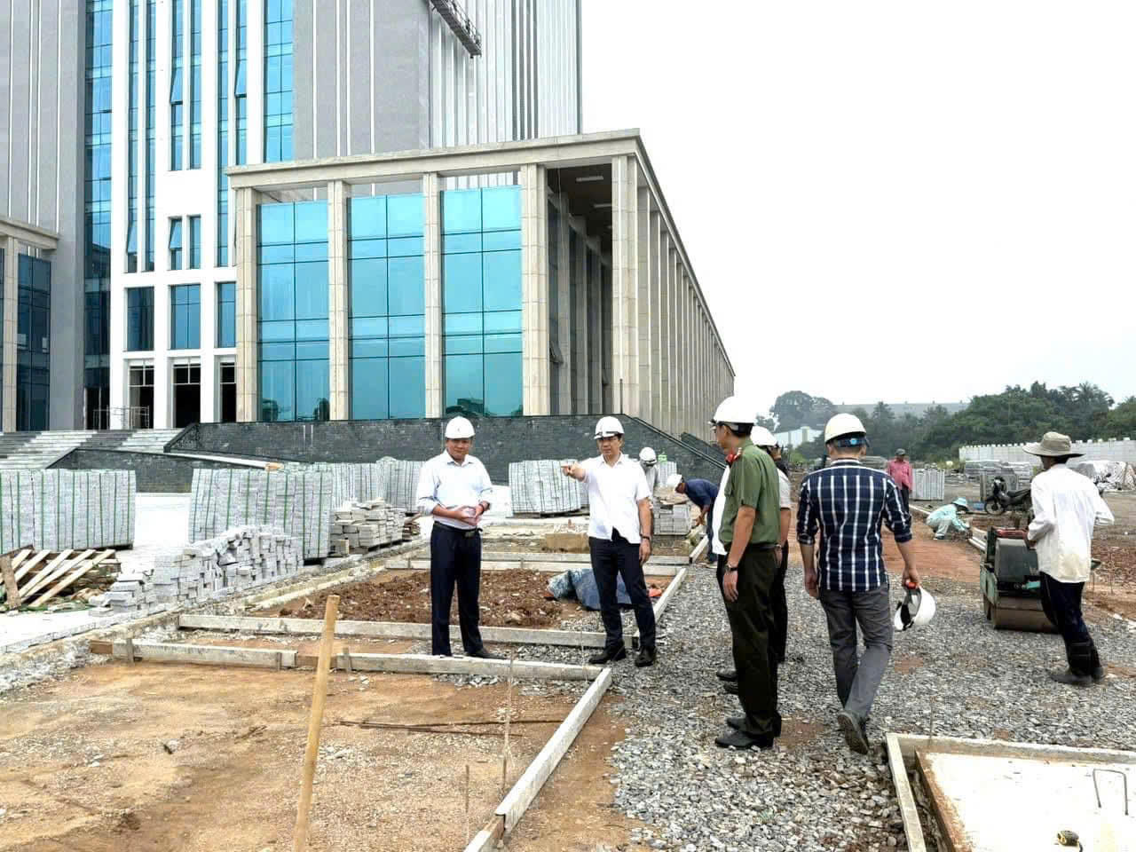 Đại tá Nguyễn Hồng Phong (áo trắng, đứng thứ 2 từ trái qua) kiểm tra trực tiếp tại công trình Trung tâm chỉ huy Công an Đồng Nai (Ảnh: CACC) |
