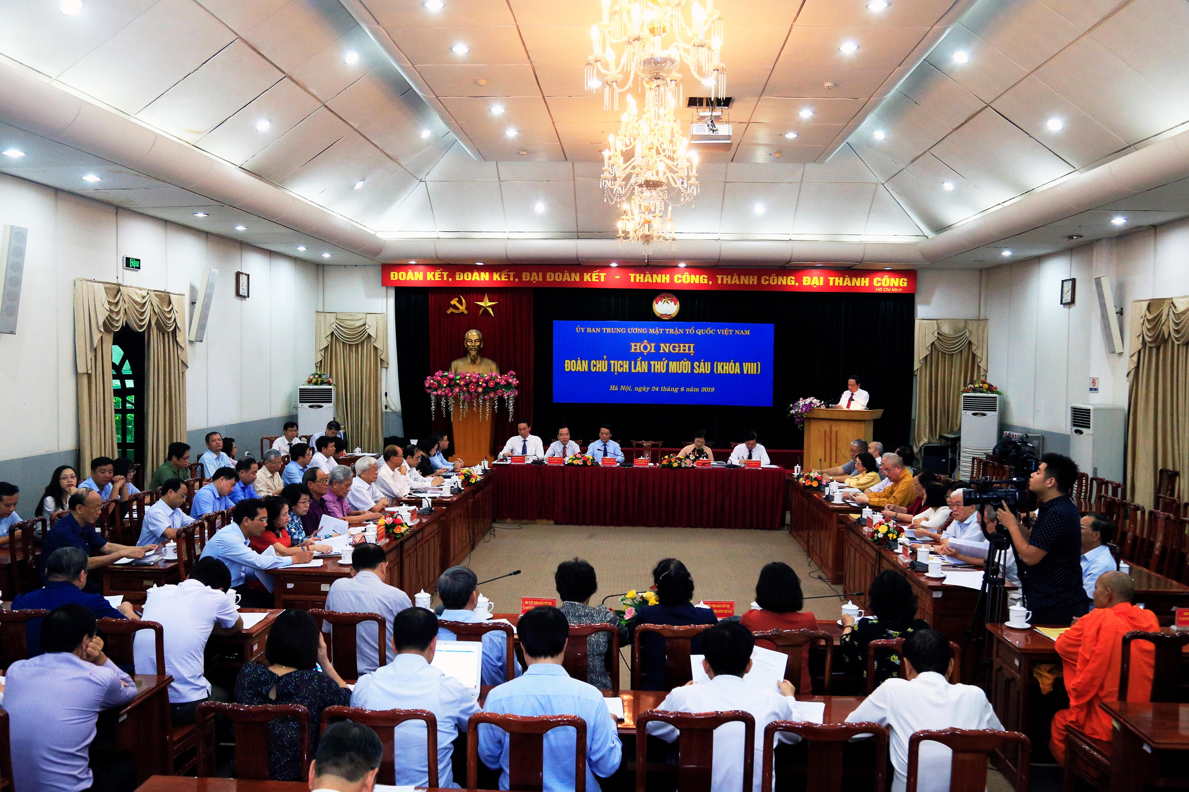 Trước đó, phát biểu khai mạc Hội nghị, Ủy viên Trung ương Đảng, Chủ tịch UBTW MTTQ Việt Nam Trần Thanh Mẫn khẳng định, năm 2019 là năm bứt phá để hoàn thành kế hoạch 5 năm 2016-2020 và kỷ niệm 50 năm thực hiện Di chúc của Chủ tịch Hồ Chí Minh; đối với MTTQ Việt Nam, đây là thời điểm về đích chương trình hành động nhiệm kỳ thực hiện Nghị quyết Đại hội đại biểu toàn quốc MTTQ Việt Nam lần thứ 8; là năm có ý nghĩa hết sức quan trọng diễn ra Đại hội MTTQ Việt Nam các cấp và Đại hội đại biểu toàn quốc MTTQ Việt Nam lần thứ 9.