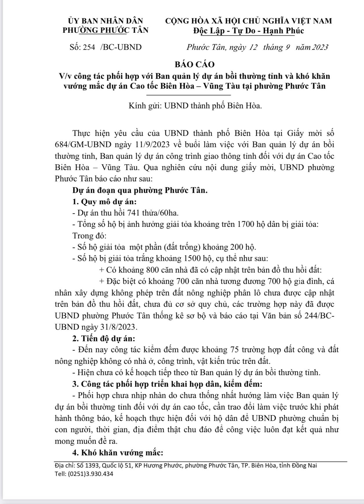 Cũng theo UBND phường Phước Tân, đến nay do phường vẫn chưa nhận được hồ sơ kỹ thuật thửa đất dự án nên không thể thống kê chính xác mà chỉ thống kê sơ bộ các hộ mua bán chuyển nhượng bằng giấy tay, xây dựng nhà trên đất người khác thuộc phạm vi của dự án.