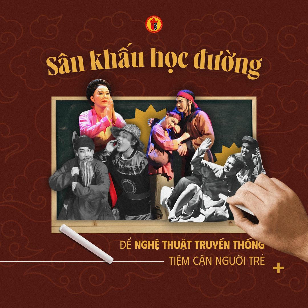 - “Sân khấu học đường” là một trong những chương trình được Nhà hát duy trì thực hiện hàng năm, dưới sự chỉ đạo của Bộ Văn hoá, Thể thao và Du lịch. Đây là chương trình hướng tới các khán giả trẻ còn ngồi trên ghế nhà trường nhằm giới thiệu và quảng bá nghệ thuật Tuồng. Không những thế, hoạt động này còn hỗ trợ phát triển và giáo dục tư duy đa chiều cho các em học sinh.
