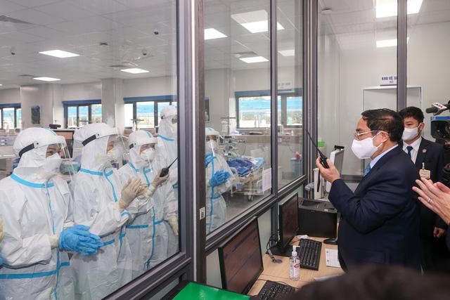 Phát biểu tại Bệnh viện điều trị bệnh nhân COVID-19, Thủ tướng nhắc lại thời điểm hết sức cam go khi dịch bệnh diễn biến phức tạp trong tháng 7, tháng 8 năm 2021, yêu cầu đặt ra là phải thiết lập một số bệnh viện dã chiến.