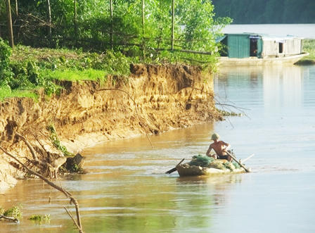 Ông Nguyễn Văn Tuế, (đội 6 – xã Hoằng Khánh) lo lắng, hôm mùng 3 mùng 4 vừa qua, nước sông Mã từ thượng nguồn đổ về, nước sông dâng cao và chảy siết đã làm sạt lở chân đê nghiêm trọng. “Tôi thầu của xã diện tích đất ngay bên bờ sông Mã, mấy ngày qua, mưa lớn, nước sông dâng và chảy siết đã cuốn đi 200 cây xoan trồng được 6 năm và hơn 60 bụi tre… Sợ nước tiếp tục chảy, đất lở sâu vào chân đê nên còn hơn 100 cây xoan tôi thuê người đến chặt mang về nhà”, ông Tuế cho biết.