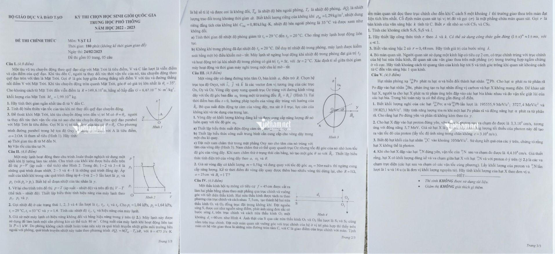 Đề thi môn Vật lý. Ảnh: Vietnamnet |