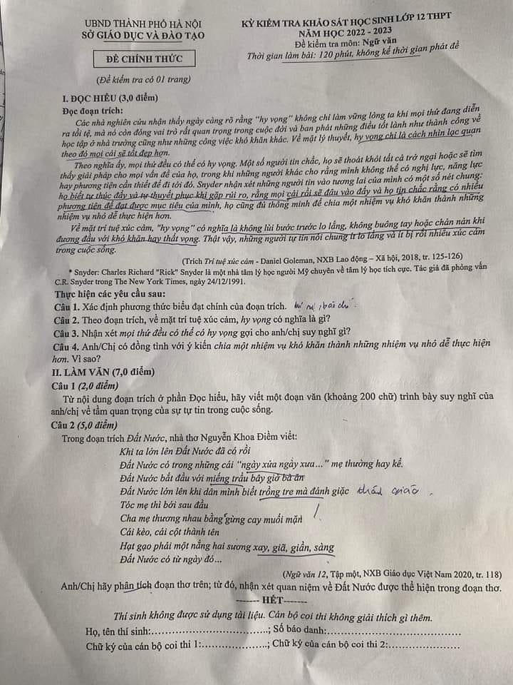| Đề thi môn Ngữ văn (Ảnh: FB: Đặng Minh Hiếu) |