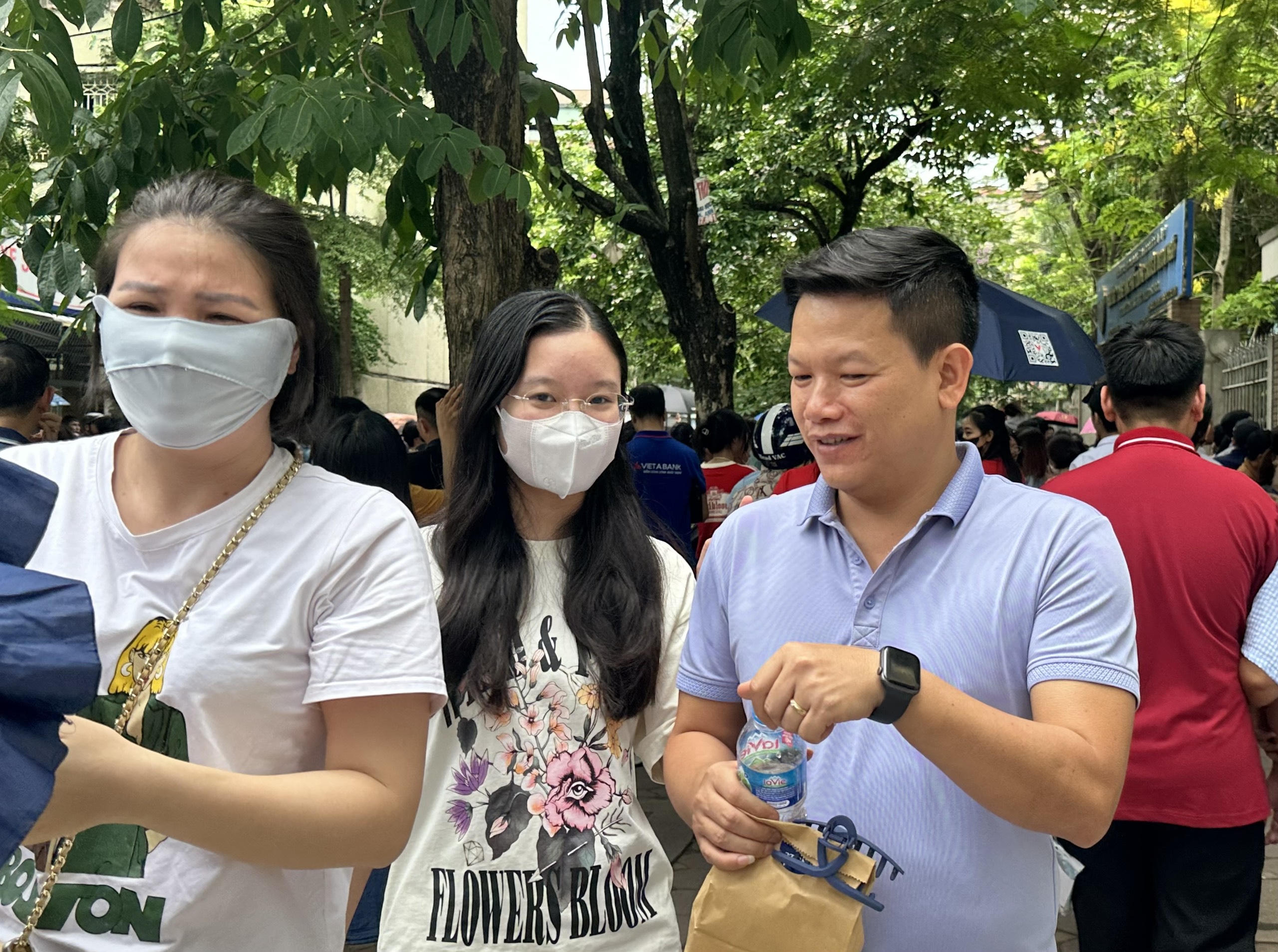 Phụ huynh "tay bắt mặt mừng' sau khi con hoàn thành xong kỳ thi. |