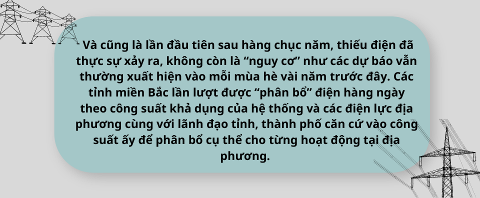 Thực tế thiếu điện vào mùa hè 2023 đã được Tập đoàn điện lực Việt Nam cảnh báo sớm. Hàng loạt kế hoạch điều độ hệ thống đã được lên, các doanh nghiệp được huy động vào cuộc để “hạ nhiệt” cho hệ thống điện quốc gia vào những lúc nắng nóng đỉnh điểm…