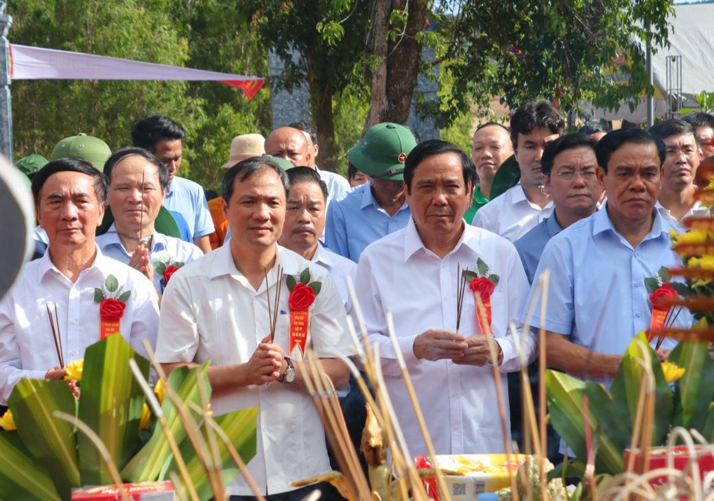 Các đồng chí lãnh đạo tỉnh Hà Tĩnh dâng hương tại đền thờ anh hùng liệt sĩ tại lòng hồ Kẻ Gỗ tháng 8/2023 |