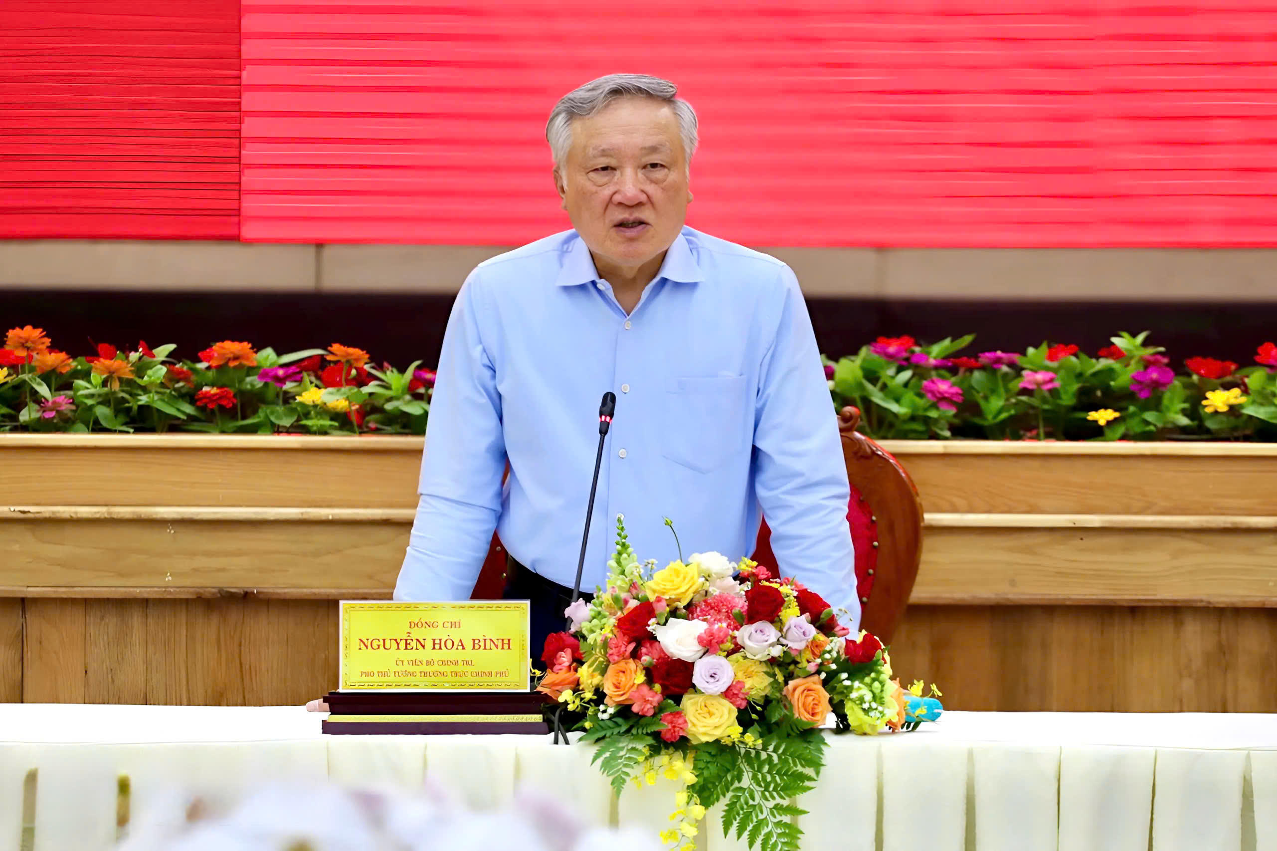 Ủy viên Bộ Chính trị, Phó Thủ tướng Thường trực Chính phủ Nguyễn Hòa Bình phát biểu tại buổi làm việc. |