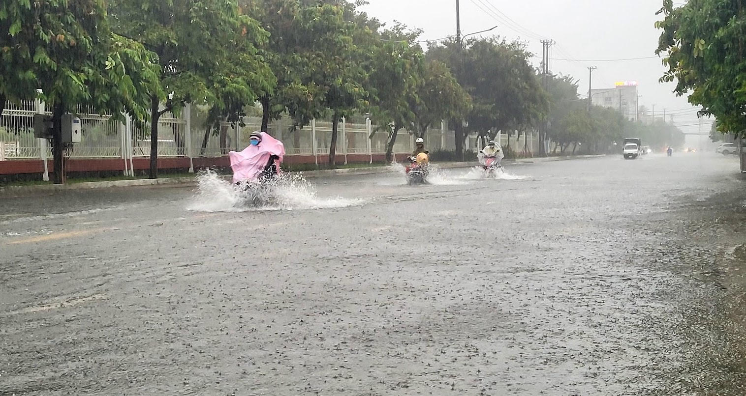 Nhiều tuyến đường ở TP Tam Kỳ ngập sâu trong đợt mưa mới đây. (Ảnh: Công Huy). |