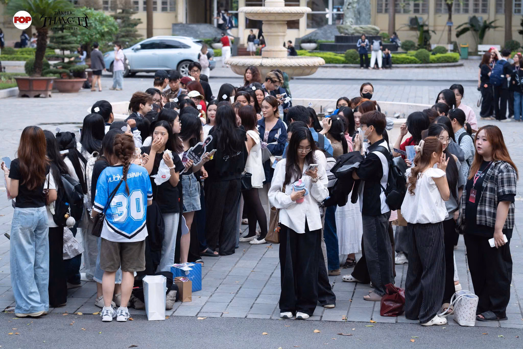 Ngay từ sớm, khu vực trước Hội trường lớn đã trở nên nhộn nhịp khi đông đảo sinh viên háo hức có mặt, xếp hàng chờ vào chương trình. Không khí rộn ràng lan tỏa với những cuộc trò chuyện, tiếng cười xen lẫn sự mong chờ trước giờ G.