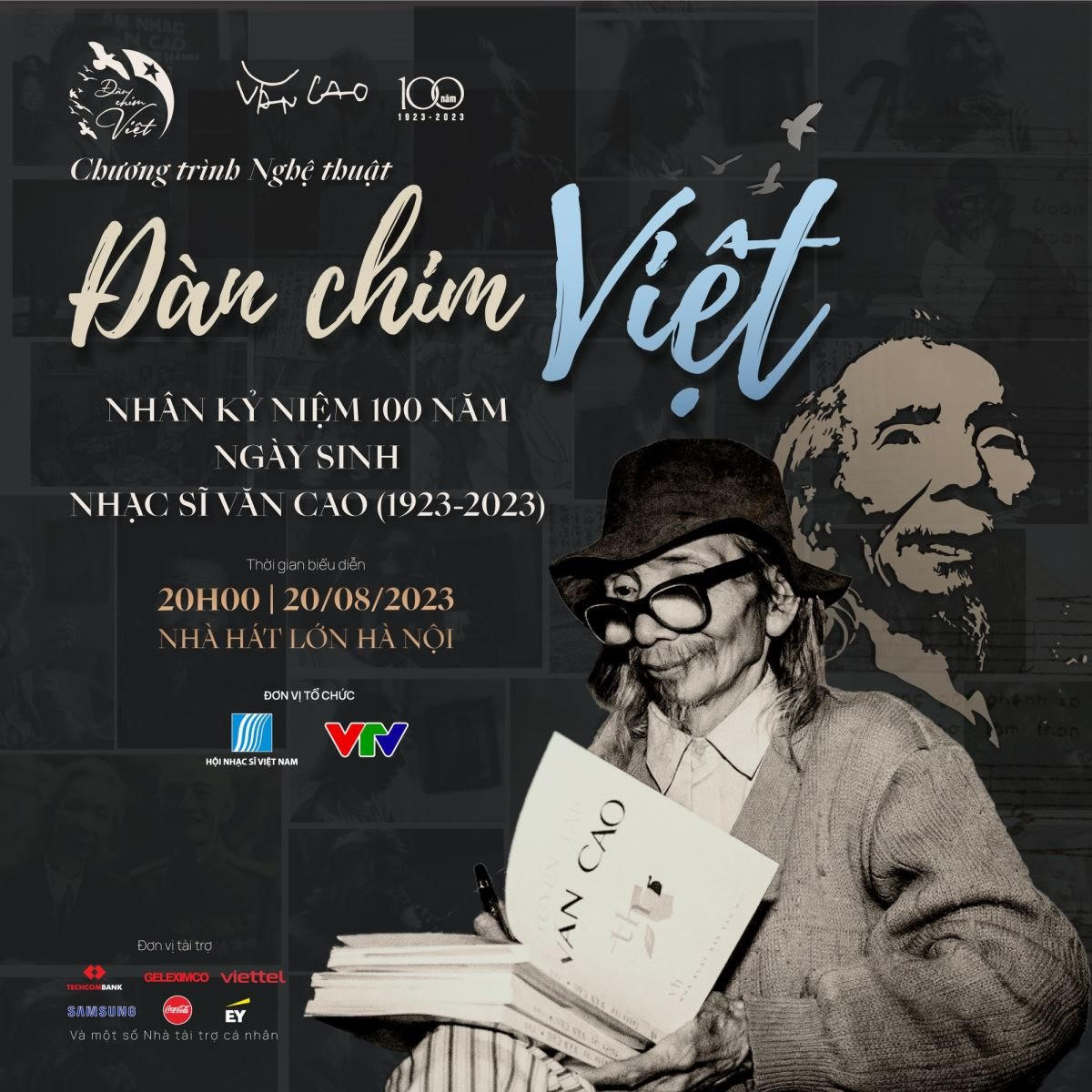 (PLVN) - Nhân kỷ niệm 100 năm Ngày sinh nhạc sĩ Văn Cao (1923 - 2023), Hội Nhạc sỹ Việt Nam phối hợp với các đơn vị liên quan tổ chức chương trình nghệ thuật đặc biệt tôn vinh nhạc sĩ. Đêm diễn mang chủ đề “Đàn chim Việt”, diễn ra vào 20h ngày 20/8, tại Nhà hát Lớn Hà Nội.