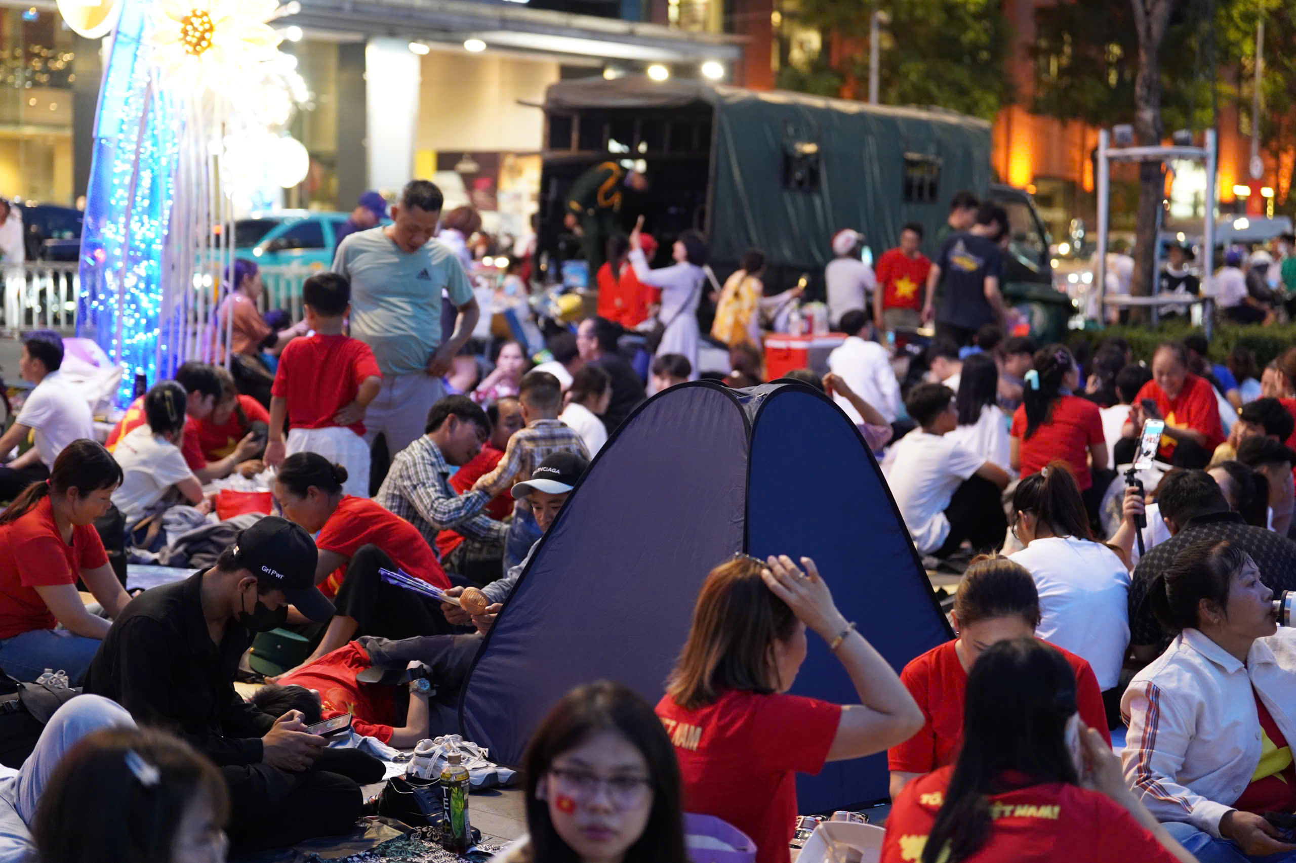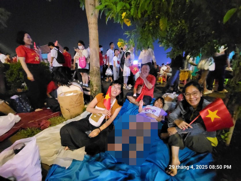 (PLVN) - Đông đảo người dân đang tập trung tại một số tuyến đường khu vực trung tâm quận 1, TP HCM, nơi sáng mai, 30/4 diễn ra Lễ diễu binh, diễu hành mừng 50 năm Giải phóng miền Nam, thống nhất đất nước. Nhiều gia đình, nhóm bạn trẻ... từ các tỉnh, thành khác đổ về. Mọi người đều xác định đêm nay coi như không ngủ.