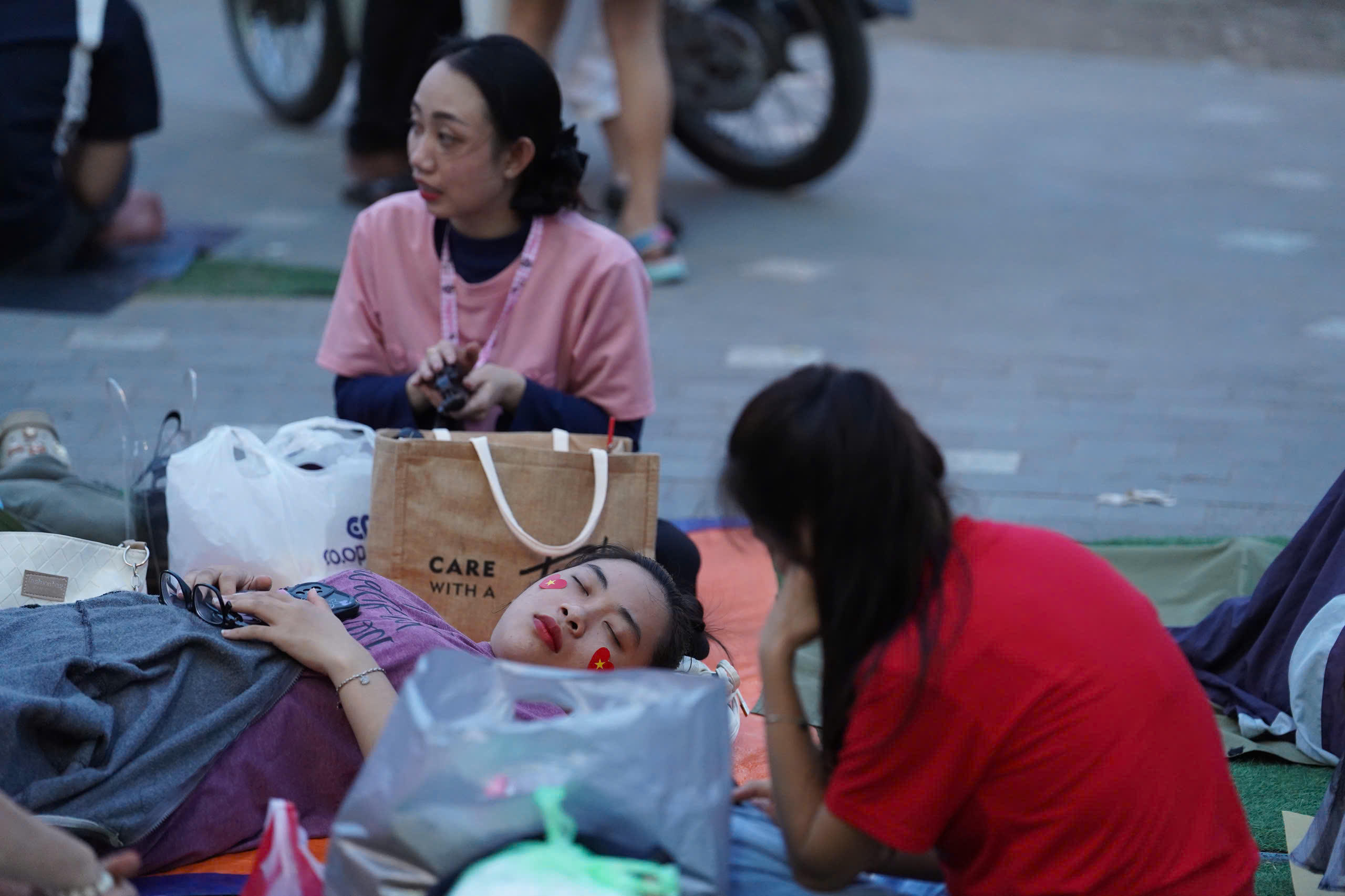 Một số bạn trẻ không ngần ngại tranh thủ chợp mắt... |