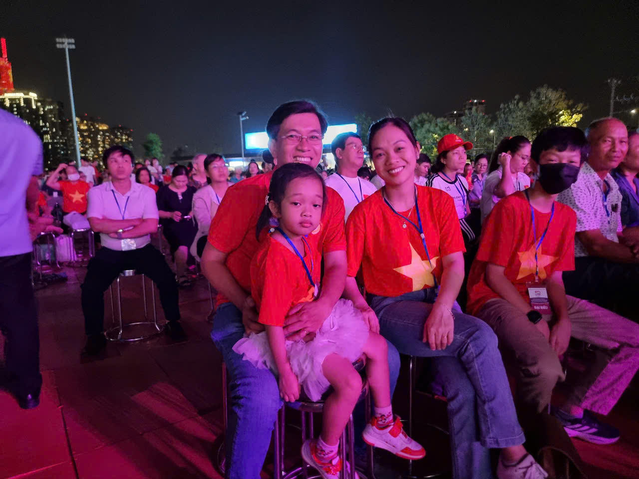 Gia đình anh Bùi Văn Tân (phường Long Trường, quận Thủ Đức) vào trung tâm TP HCM từ sớm để thưởng thức các tiết mục nghệ thuật. |
