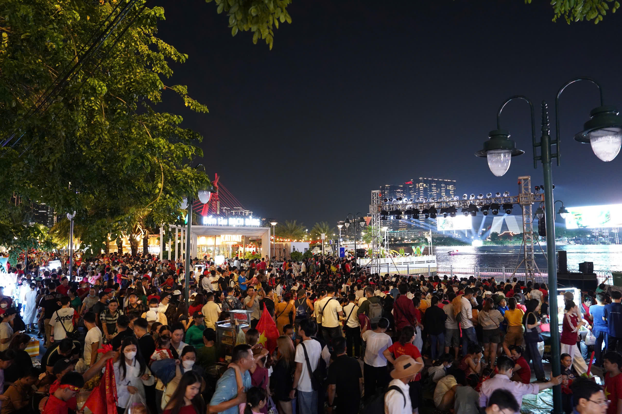 "Biển người" đổ về khu vực Công trường Mê Linh (phường Bến Nghé, quận 1), gần khu vực sẽ diễn ra diễu binh, diễu hành. |