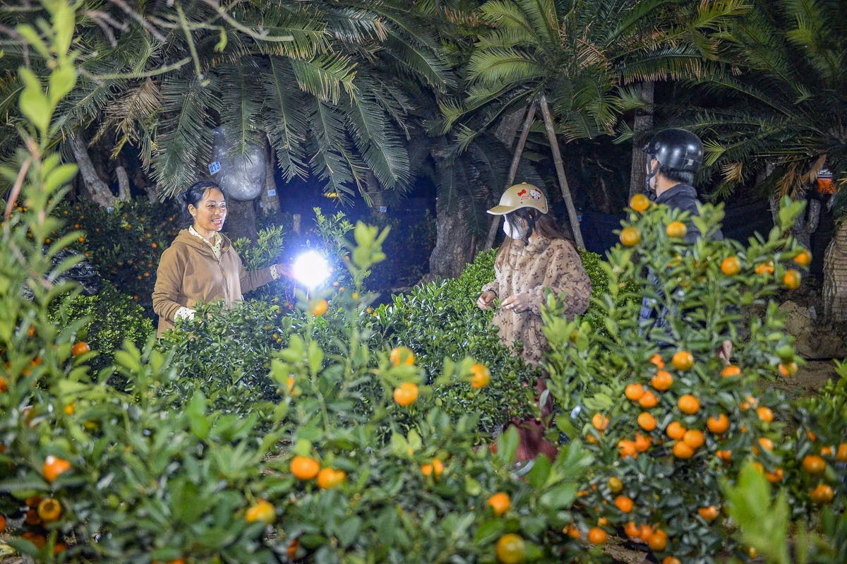Trong màn sương đêm, thỉnh thoảng có vài vị khách ghé lại, soi đèn điện thoại xem dáng cây, nắn thử cành đào rồi rời đi. Mỗi lượt khách như vậy lại thắp lên một chút hy vọng, dù giao dịch chưa diễn ra ngay. Với người buôn cây, chỉ cần có người hỏi, có người để ý, là đã có động lực để tiếp tục chờ đợi.