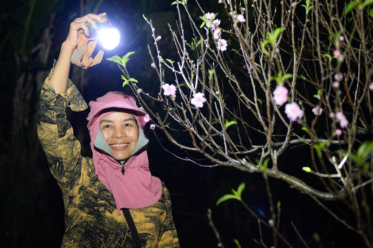 Gắn bó hơn 10 năm với việc mang đào xuống phố bán mỗi dịp Tết, bà Lê Thị Hường (55 tuổi, trú xã Xuân Du) đã quá quen với những đêm trắng. Theo bà, cứ đưa cây ra phố là xác định phải trông coi 24/24 giờ. “Ít nhất cũng hai người thay nhau thức, chứ không thể rời mắt. Cực thì có cực, nhưng ai cũng trông chờ bán được hàng để Tết trong nhà đỡ lo hơn", bà Hường chia sẻ.