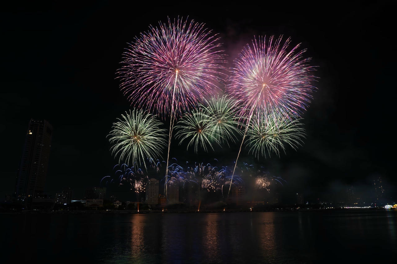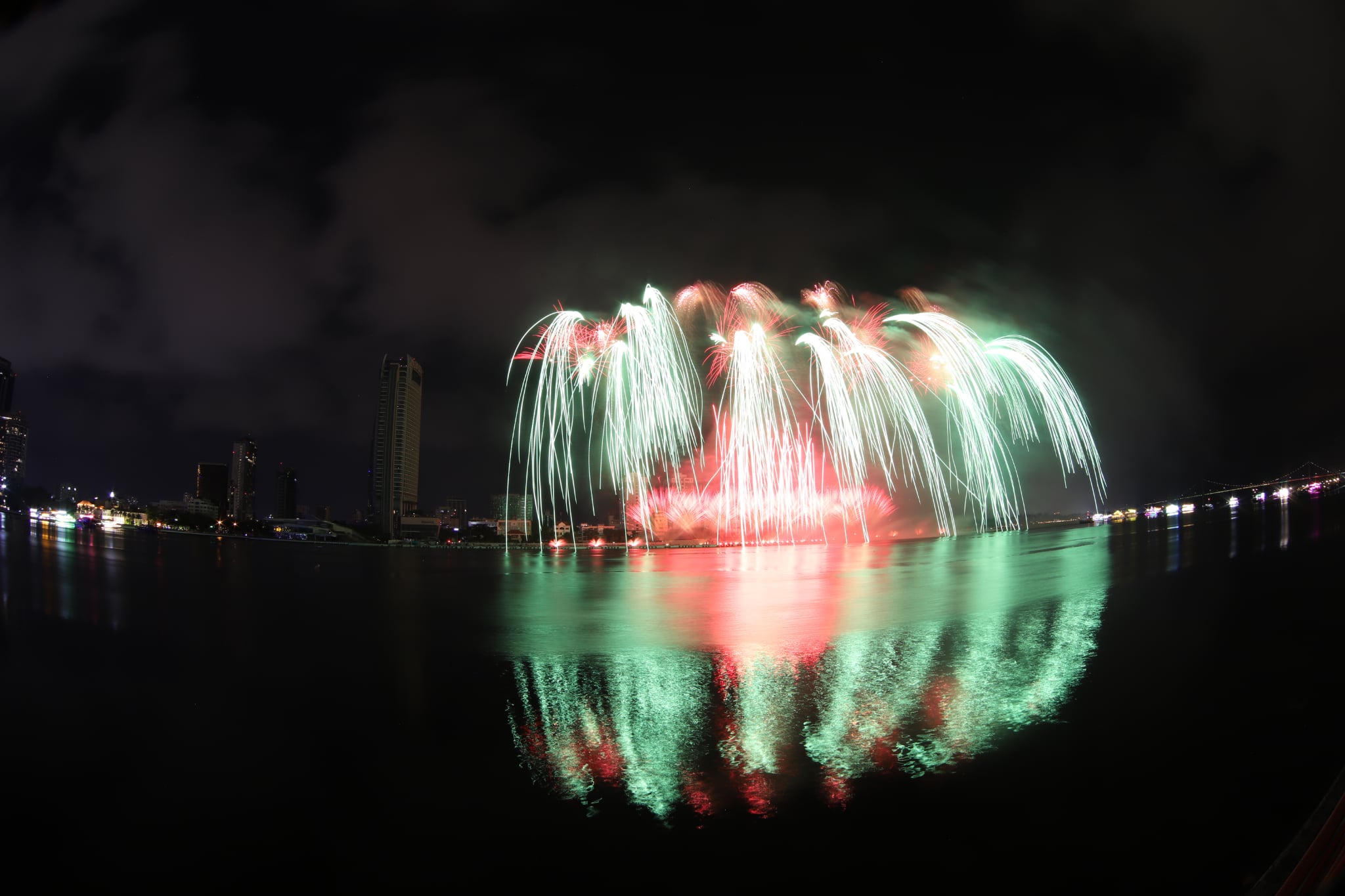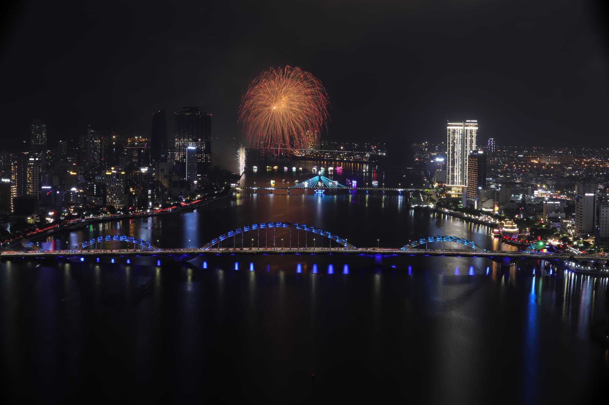 Mở đầu rộn ràng, những chùm pháo đa sắc bùng nổ theo nhịp nhạc sôi động, vẽ lên bầu trời những gam màu sống động và hiện đại, khắc họa một Đà Nẵng trẻ trung, bứt phá không ngừng. Tiếp nối là sắc vàng ấm áp, kết hợp cùng hiệu ứng pháo nở chậm và rủ mềm như sao rơi, đưa khán giả vào miền ký ức xưa cũ. Như một thước phim quay chậm, phần trình diễn gợi nhắc về một Đà Nẵng từng là trung tâm giao thương sôi động từ thế kỷ 17, nơi đón những cánh buồm từ khắp thế giới.