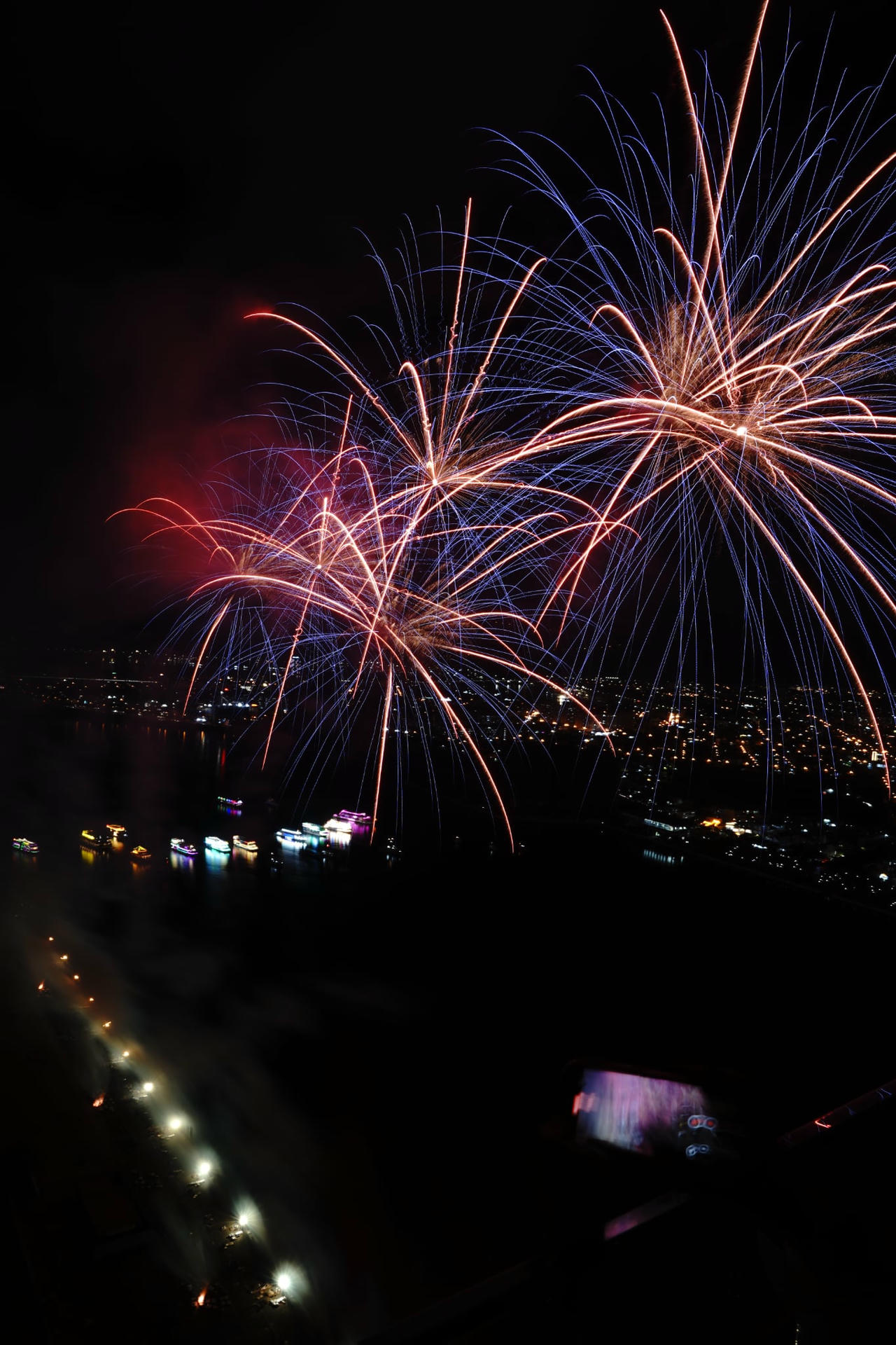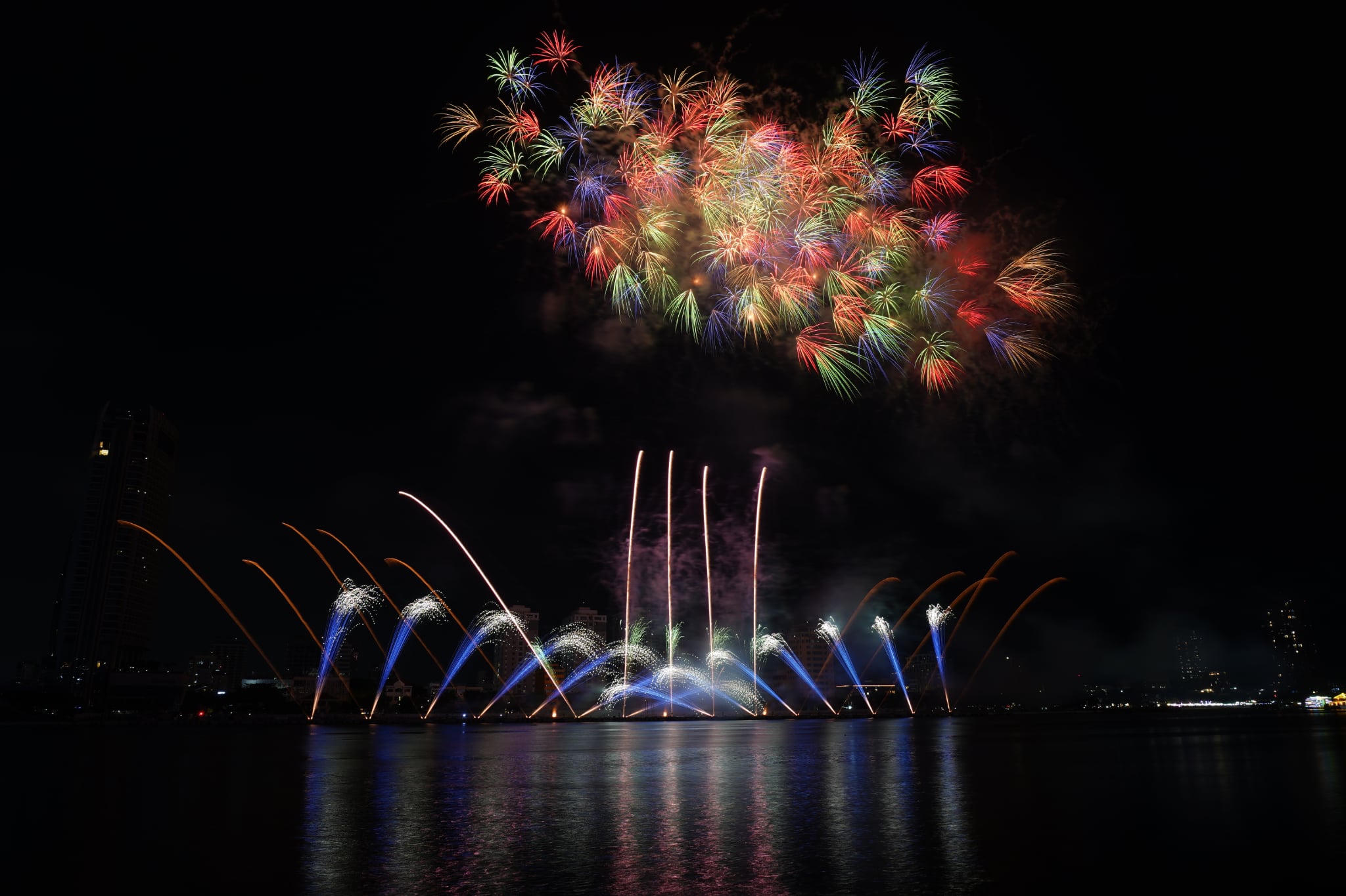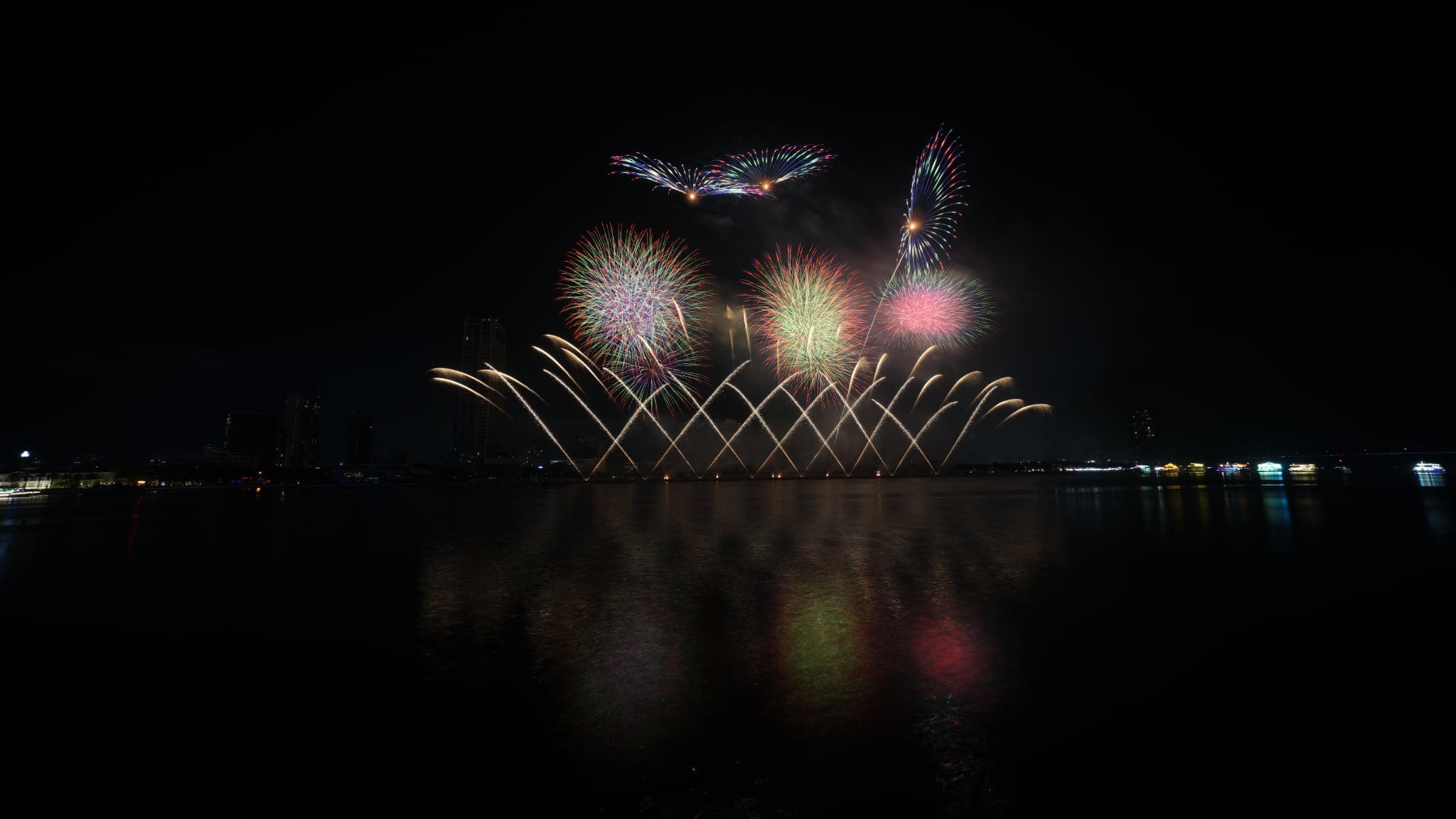 Mở đầu rộn ràng, những chùm pháo đa sắc bùng nổ theo nhịp nhạc sôi động, vẽ lên bầu trời những gam màu sống động và hiện đại, khắc họa một Đà Nẵng trẻ trung, bứt phá không ngừng. Tiếp nối là sắc vàng ấm áp, kết hợp cùng hiệu ứng pháo nở chậm và rủ mềm như sao rơi, đưa khán giả vào miền ký ức xưa cũ. Như một thước phim quay chậm, phần trình diễn gợi nhắc về một Đà Nẵng từng là trung tâm giao thương sôi động từ thế kỷ 17, nơi đón những cánh buồm từ khắp thế giới.