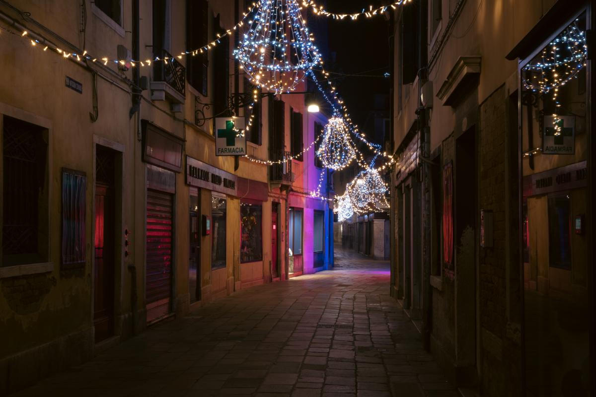 Khu mua sắm ở quảng trường St. Mark im lìm về đêm. Đi sâu vào trong thành phố, du khách sẽ có cơ hội chiêm ngưỡng nhiều công trình cổ kính như nhà thờ Basilica di San Marco, bảo tàng Doge's Palace, quảng trường Piazza San Marco...