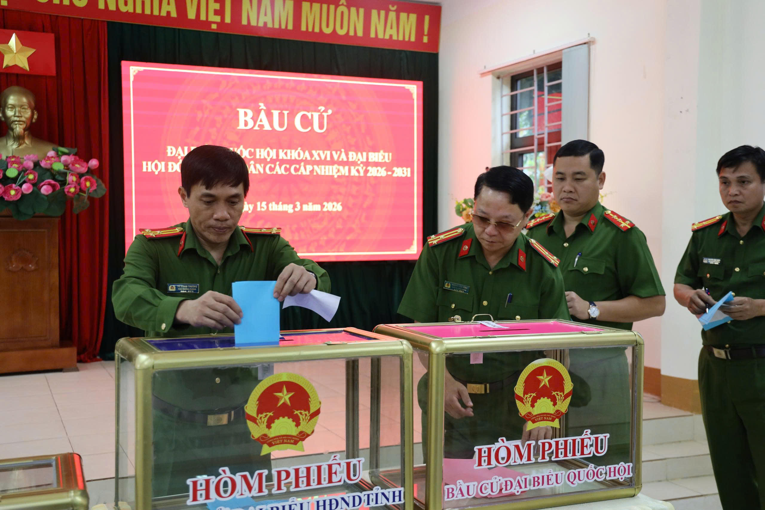 Trung tá Từ Hải Toàn - Phó trưởng Công an đặc khu Vân Đồn cho biết, trong buổi sáng nay (15/3) 100 % cán bộ, chiến sĩ (CBCS) Công an đặc khu cũng như lực lượng an ninh cơ sở đã hoàn thành nghĩa vụ bầu cử của mình. CBCS đã dùng ứng dụng VNeID để thay đổi địa điểm bỏ phiếu phù hợp với vị trí thực hiện nhiệm vụ, qua đó giúp CBCS thực hiện đầy đủ quyền và nghĩa vụ công dân trong ngày bầu cử, đồng thời hoàn thành nhiệm vụ đảm bảo an ninh trật tự.