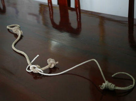 Bà Sáu bất ngờ tỉnh dậy và hô hoán bị Dũng khống chế, lấy chiếc khăn mặt gần đó nhét vào miệng và lấy chiếc dây thừng trong ba lô buộc tay chân bà Sáu.
