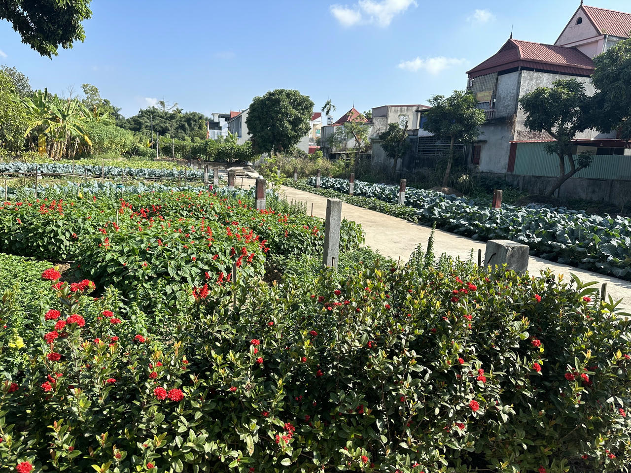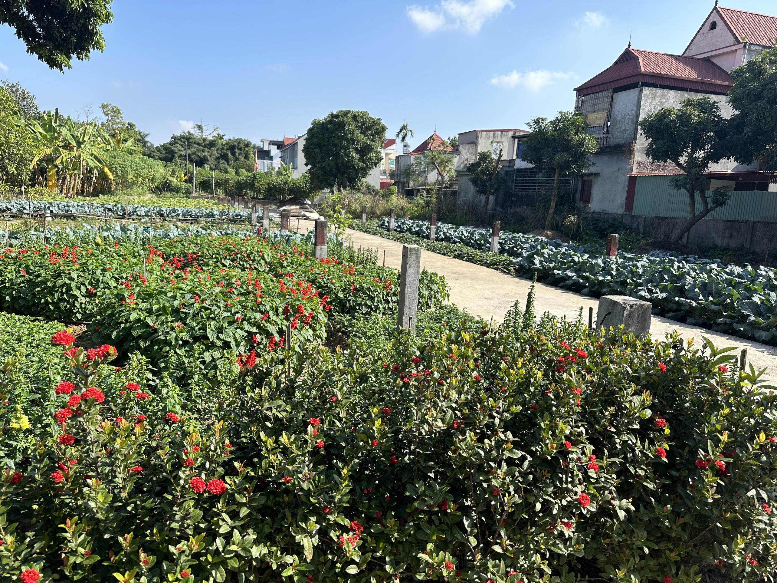 Một mảnh vườn nhỏ đẹp đẽ mơn mởn rau màu, hoa cảnh. |