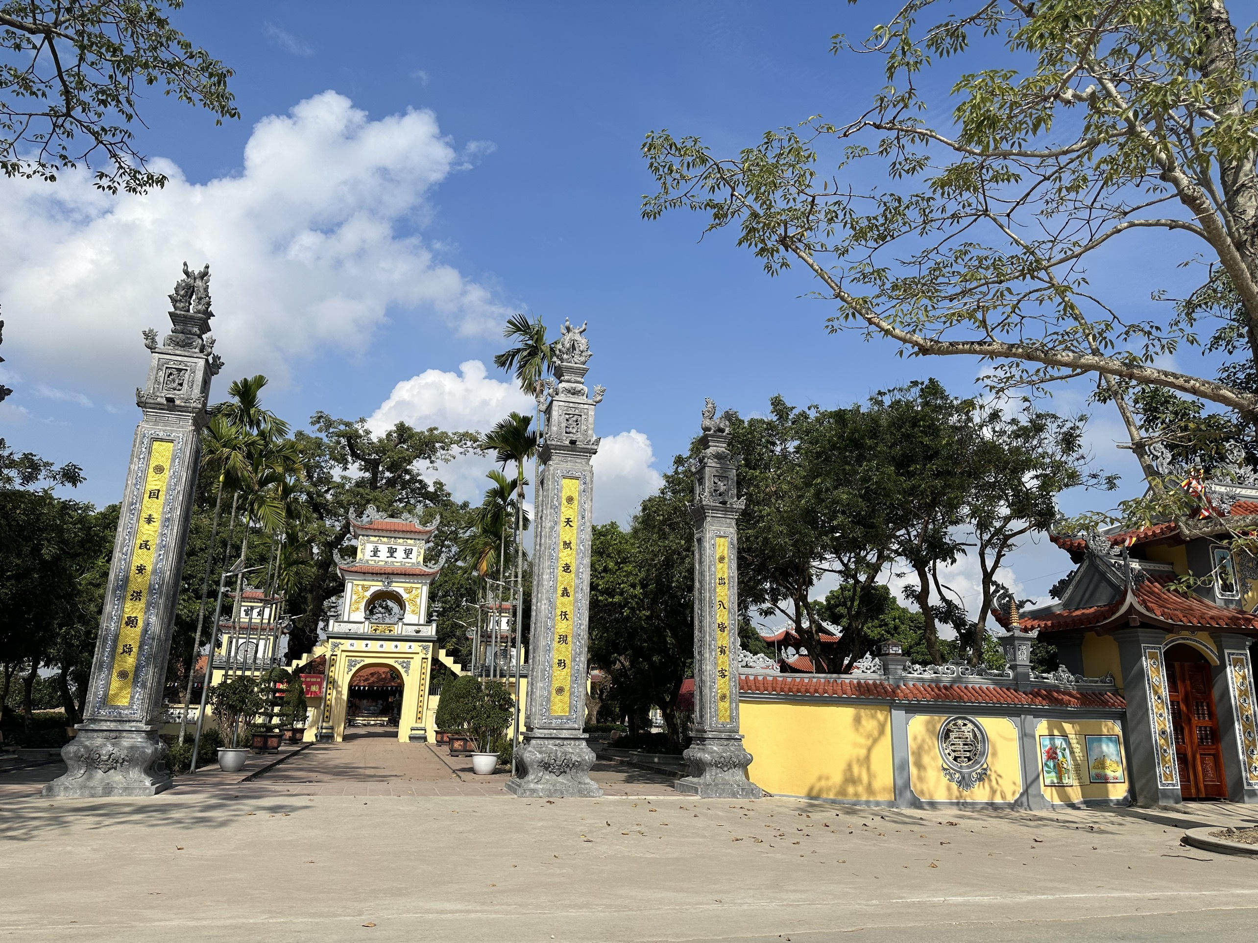 Cổng vào Khu di tích Quốc gia đền, chùa Mõ. |