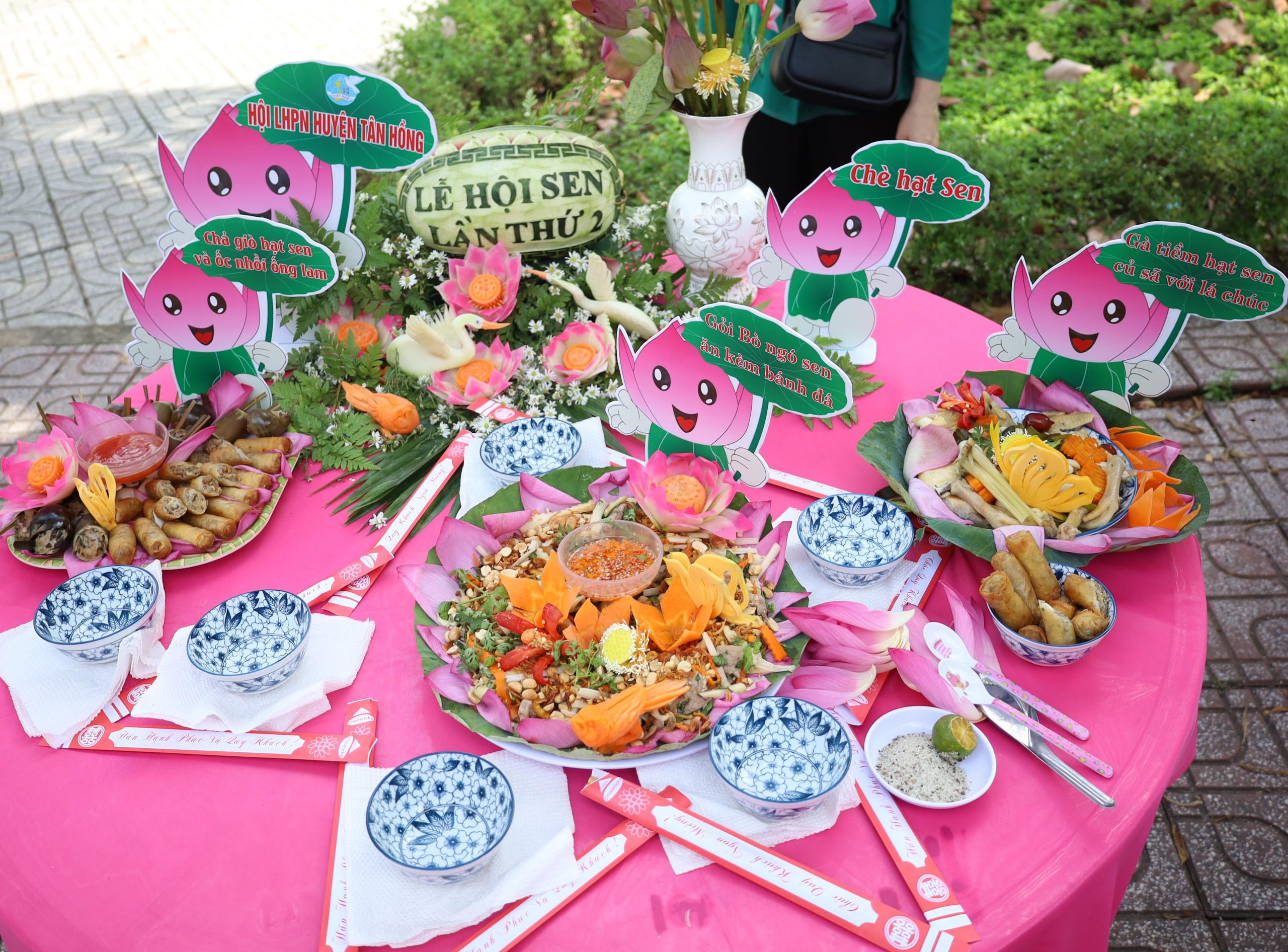 Bà Nguyễn Thị Nhanh - Chủ tịch Hội LHPN tỉnh Đồng Tháp, Trưởng Ban Tổ chức Hội thi cho biết, từ thời xa xưa, người dân Đồng Tháp đã biết dùng cây sen cả trong y học và để chế biến ẩm thực những món ăn ngon, thông dụng như cơm hạt sen, gỏi ngó sen, gà hầm sen, trà lá sen, trà tim sen, chè sen, củ sen sấy muối ớt… Tận dụng lợi thế từ thiên nhiên, qua bàn tay khéo léo và nguyên liệu phong phú từ sen, người dân Đồng Tháp đã tạo nên những món ăn hấp dẫn, đặc sắc. Các sản phẩm đã đem đến những hương vị rất phong phú và đa dạng cho ẩm thực, cũng là những món ăn tiêu biểu mà du khách luôn nhắc đến khi nói về Đồng Tháp.