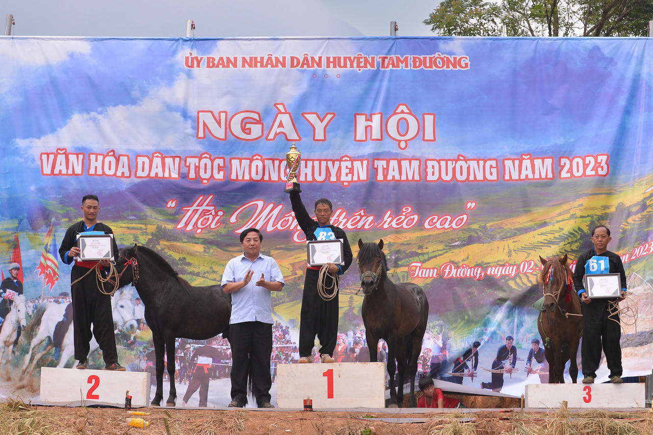 Cúp vàng giành cho Nài ngựa số 83 - Giàng A Chư, xã Tả Lèng. |