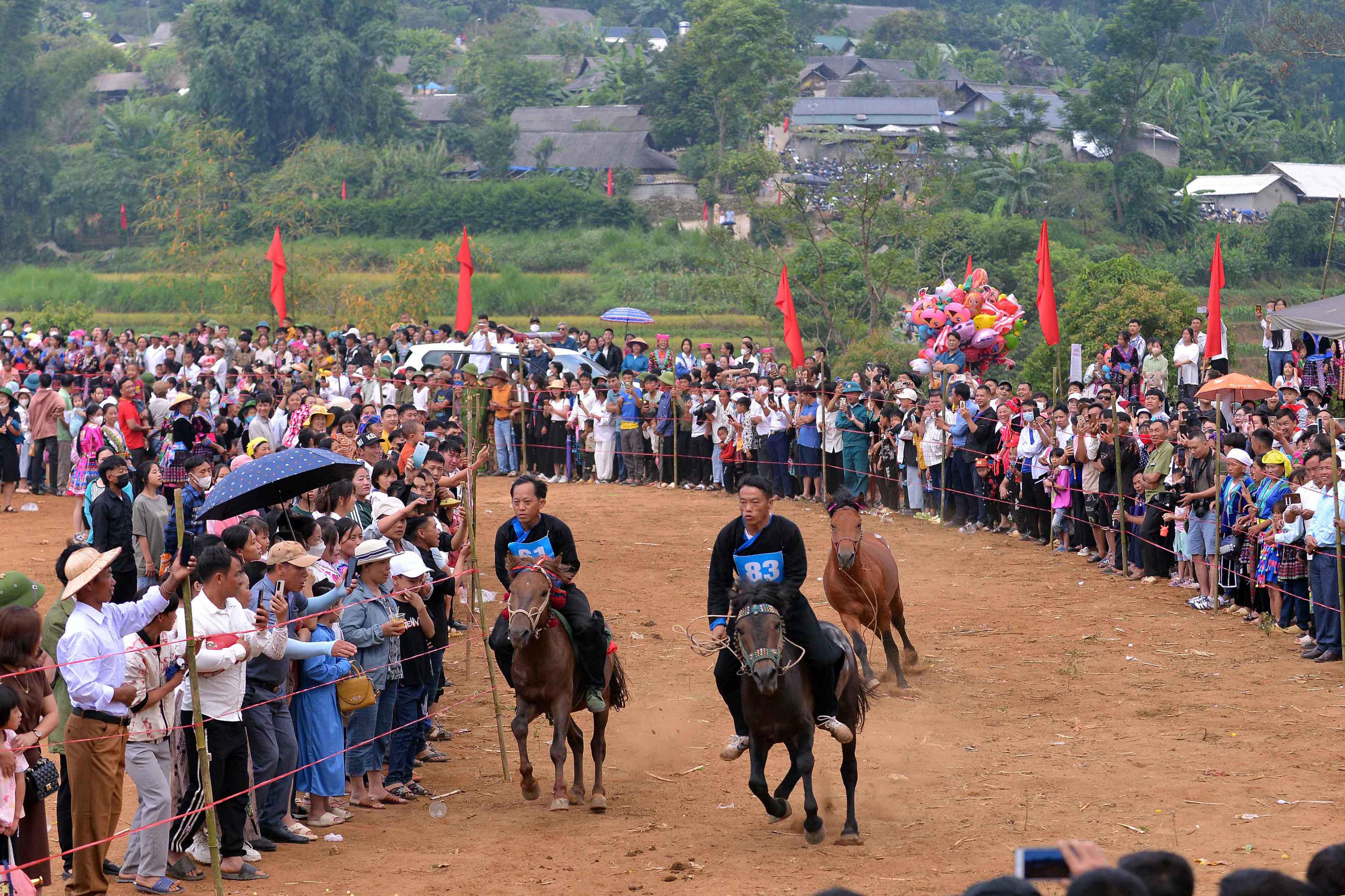 Cuộc đua ngựa thu hút người dân đến xem và cổ vũ. |